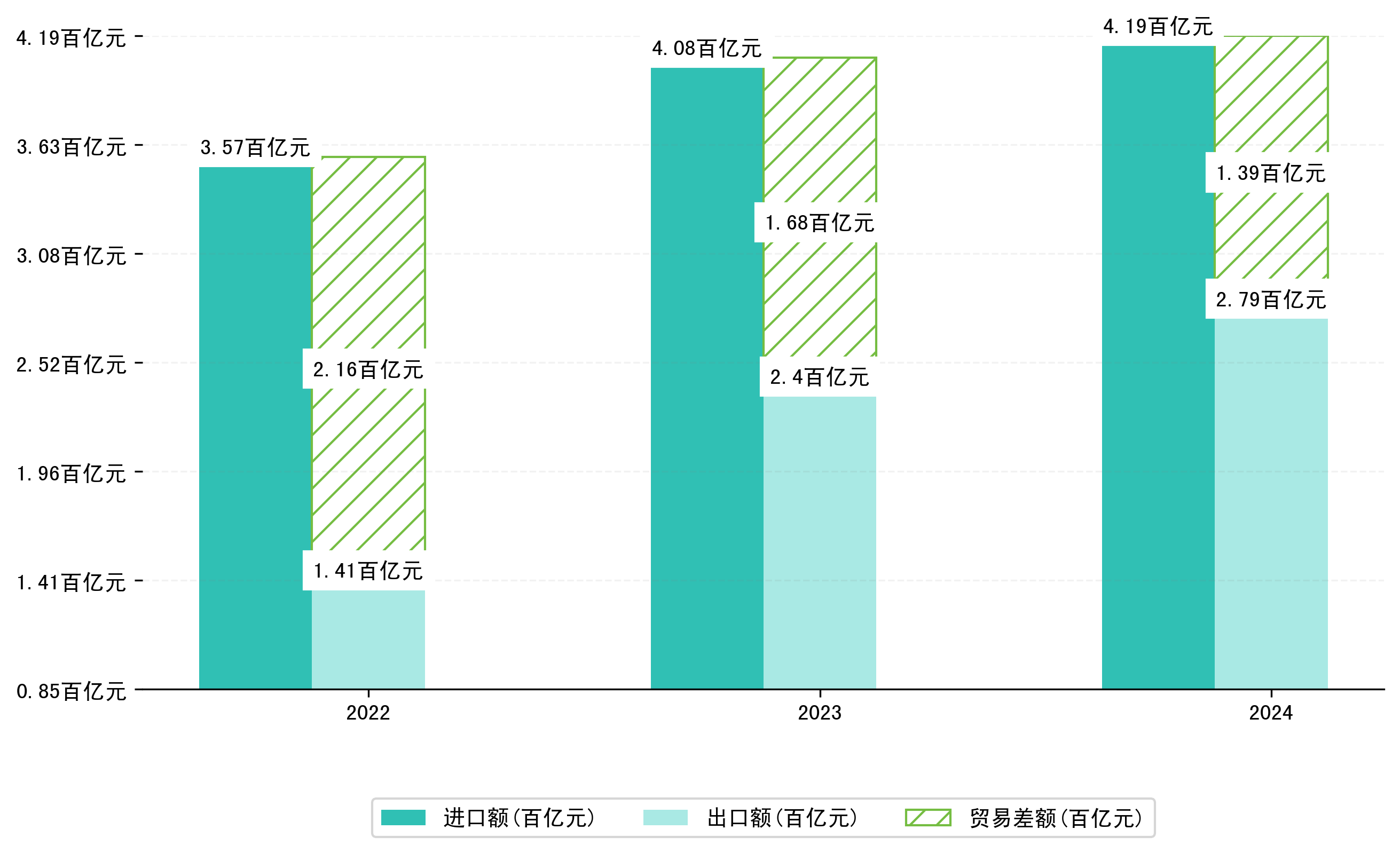以美元计,2024年10月海口市贸易差额为4,0657,5470万美元(贸易逆差),相比上月减少了2,9885,6198万美元;相比上年同期减少了1,3360,5595万美元,同比减少48.95%。