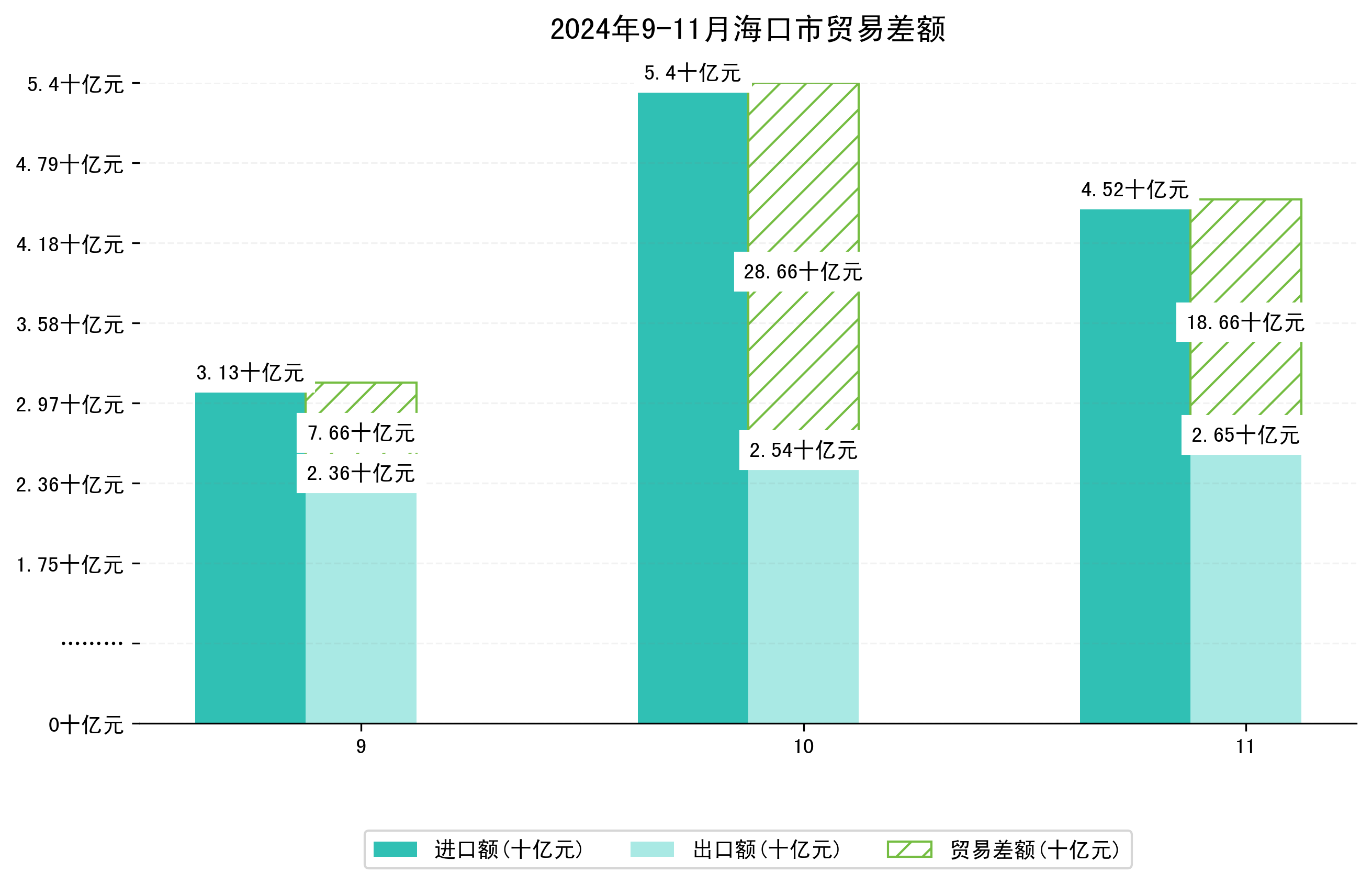 一、2024年11月海口市单月出口总额及进出口差额统计分析