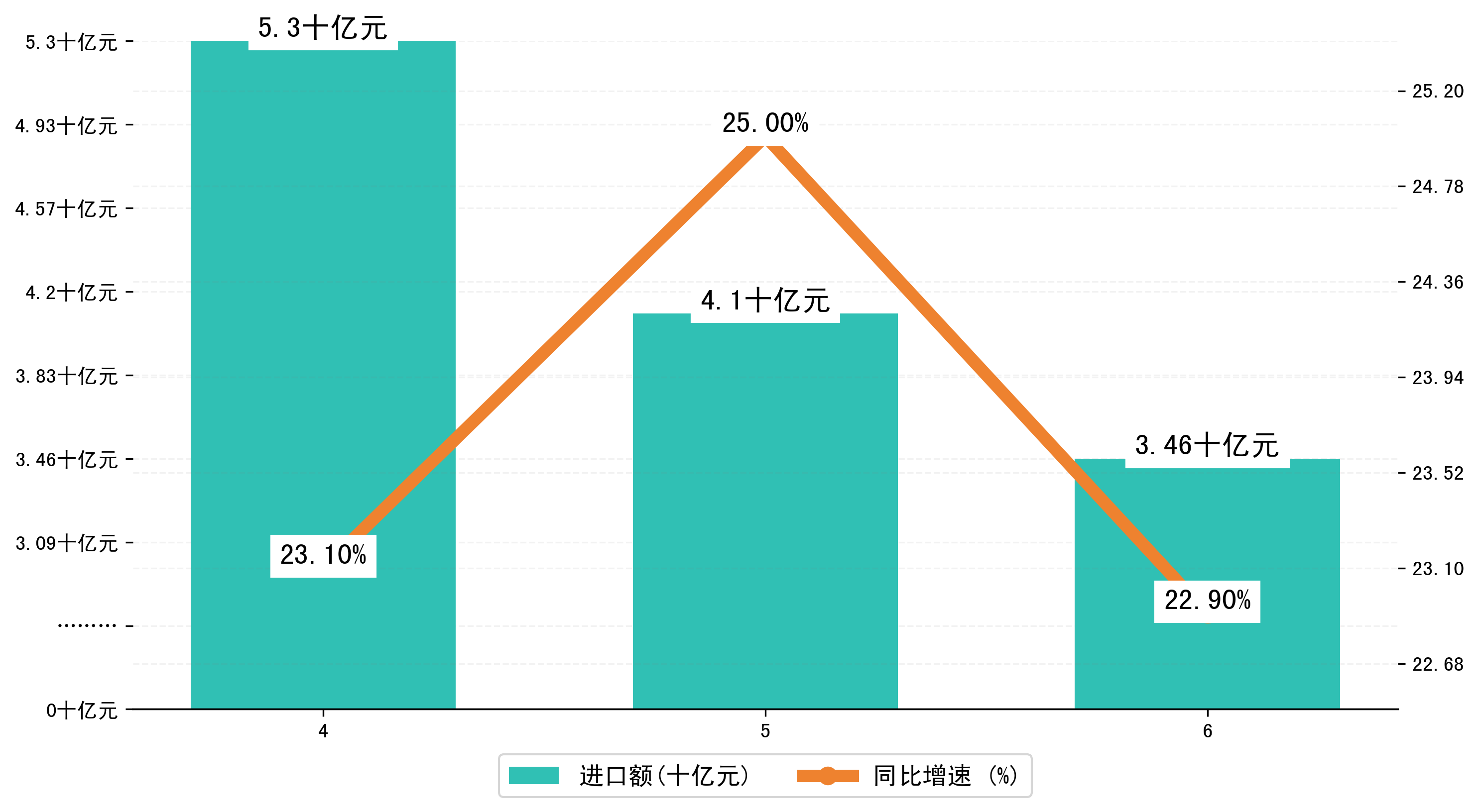 以人民币计,2023年6月海口市进口额为34,6203.253万元,相比上月减少了6,3981.7621万元;相比上年同期增加了2,4533.8231万元,同比增加了22.90%。