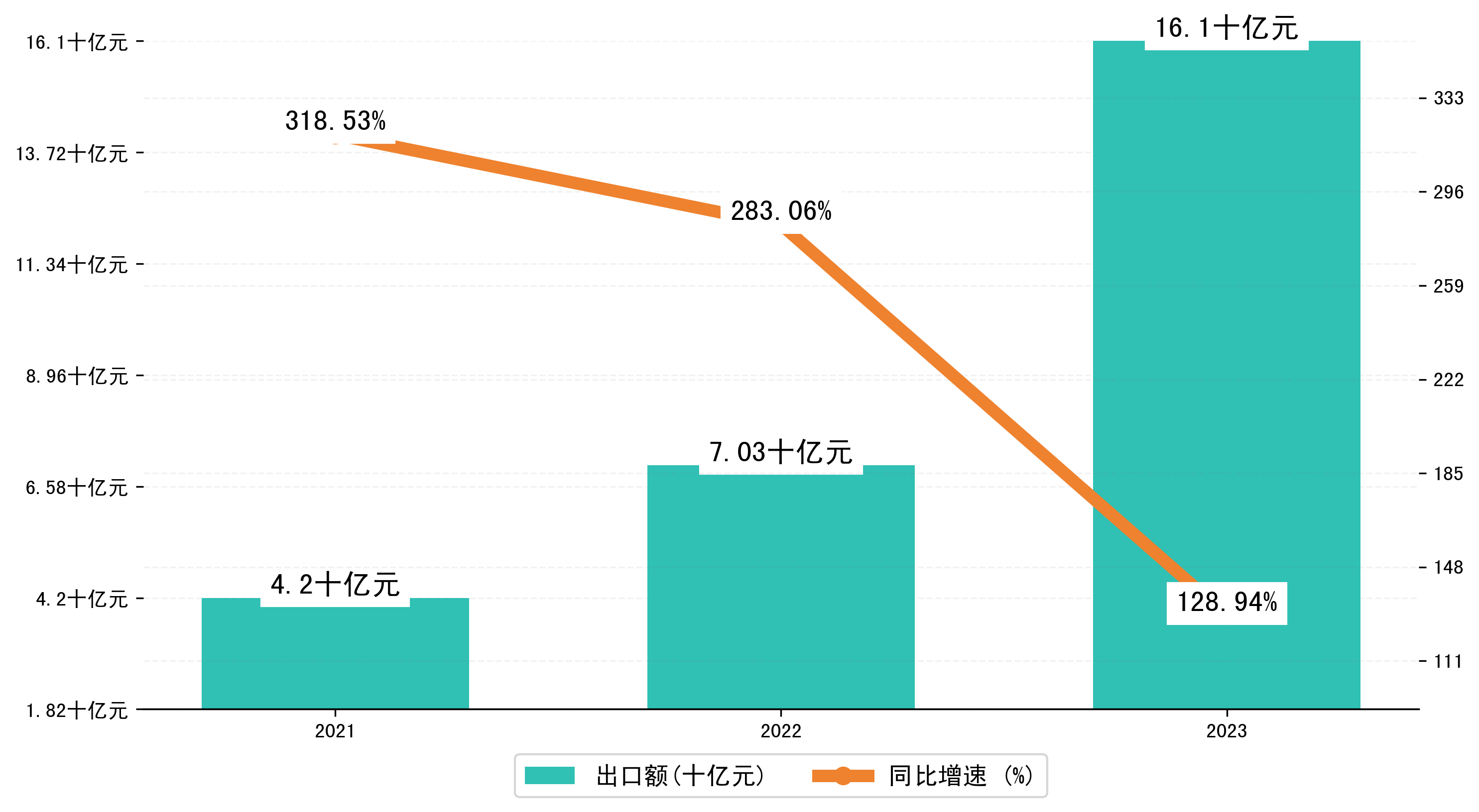 以人民币计,2023年1-6月海口市出口额为160,9751.1236万元,相比上年同期增加了90,6609.9959万元,同比增加了130.50%。