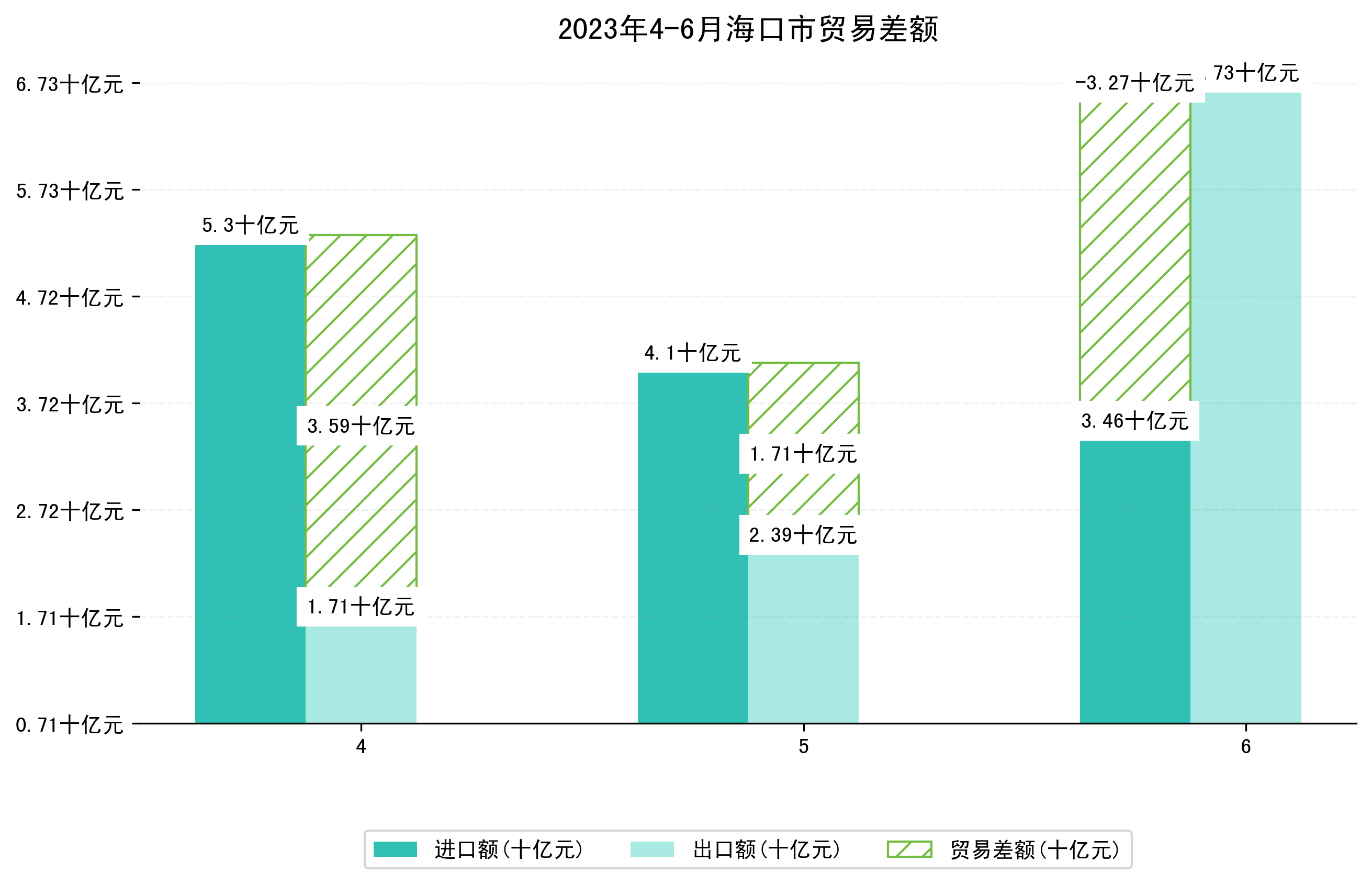 以人民币计,2023年6月海口市贸易差额为32,7056,3805万元(贸易顺差),相比上月增加了49,8393,4807万元,即7,1928,1538万美元;相比上年同期增加了47,9673,9191万元,同比增加-314.3%。