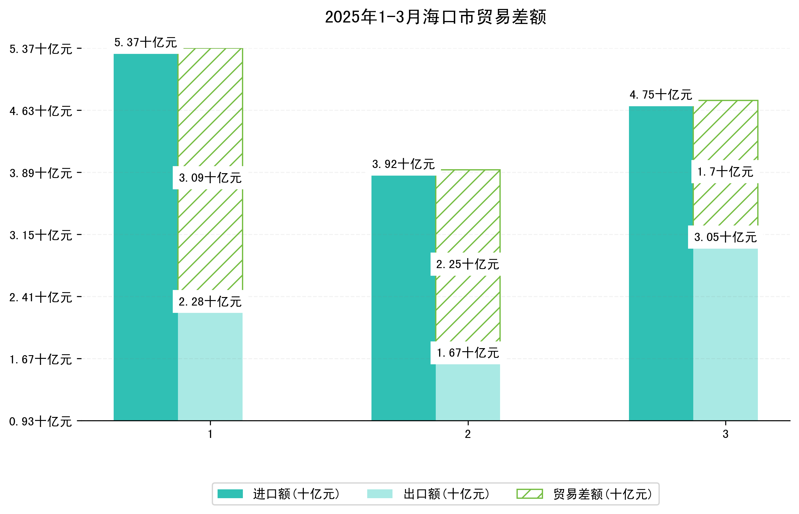 一、2025年3月海口市单月出口总额及进出口差额统计分析