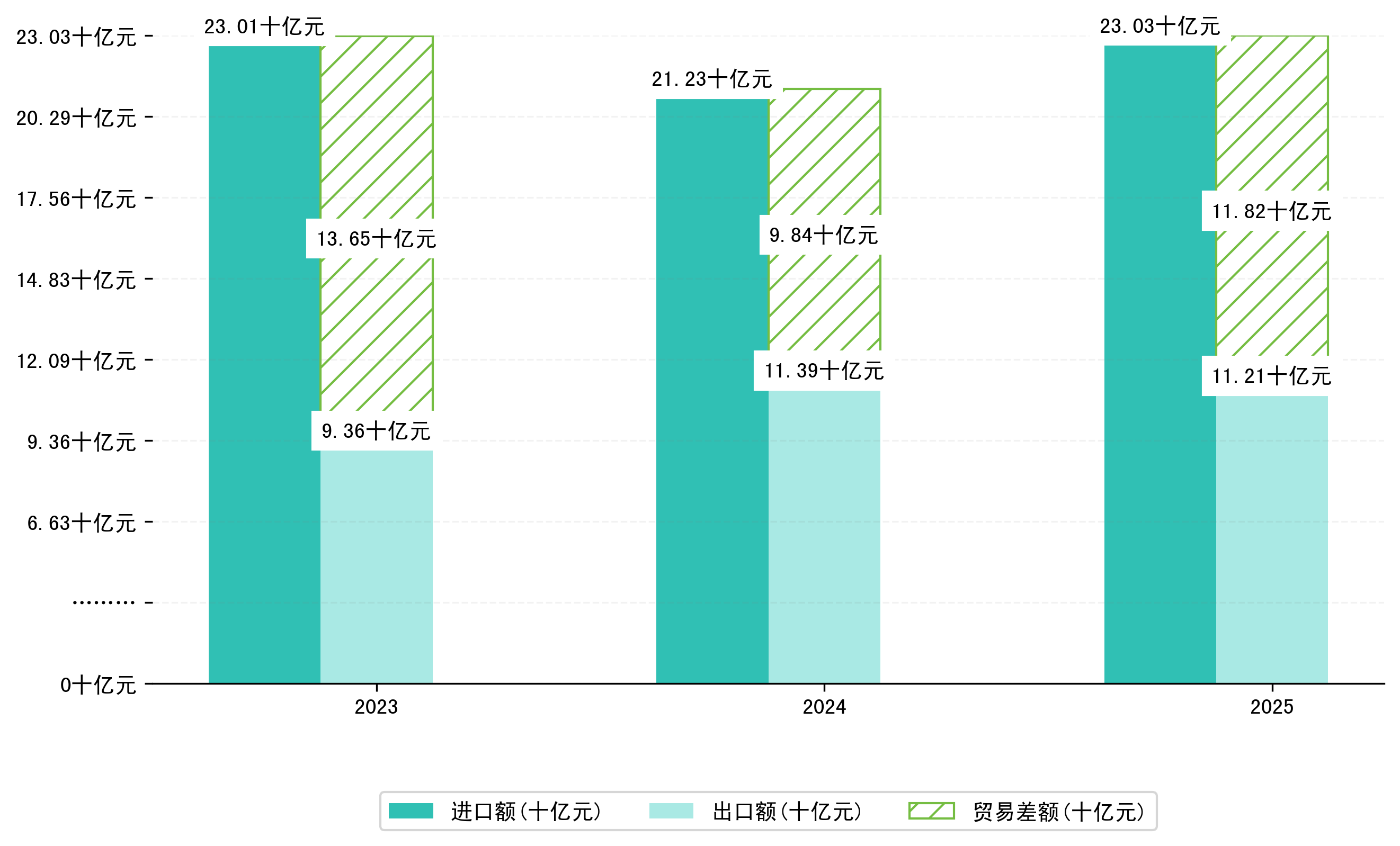 以人民币计,2025年5月海口市贸易差额为21,8632,3870万元(贸易逆差),相比上月增加了3,9358,3096万元,即5654,8518万美元;相比上年同期减少了13,3969,8376万元,同比减少158.24%。
