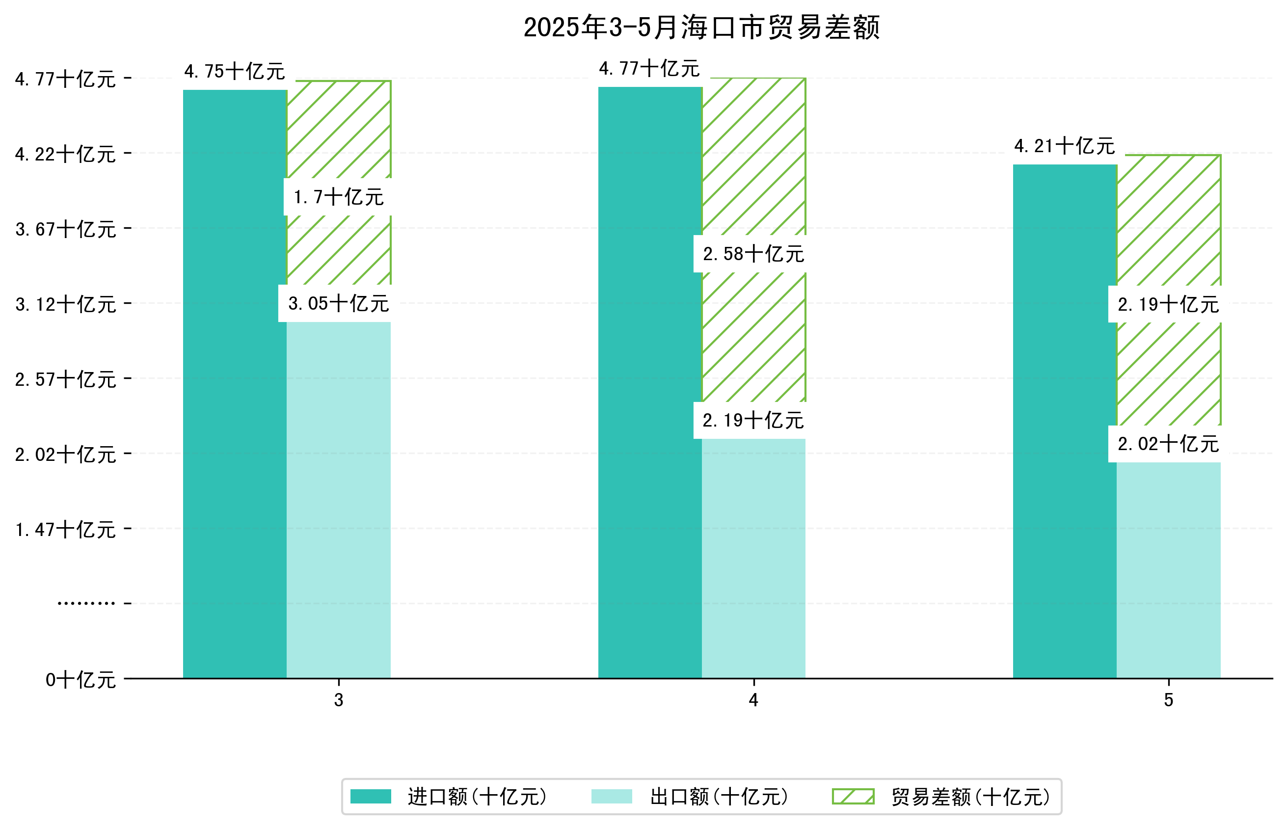 以人民币计,2025年1-5月海口市贸易差额为118,1739,6849万元(贸易逆差),相比上年同期减少了19,7462,1294万元,同比减少20.06%。