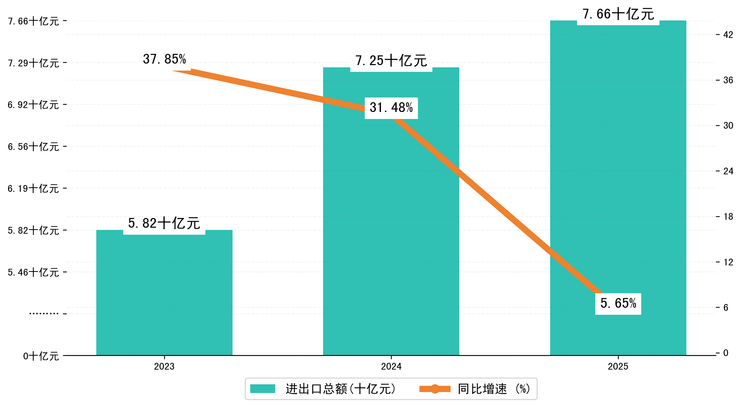 以人民币计,2025年1-1月海口市进出口总额为76,5509.2485万元,相比上年同期增加了4,0939.4753万元,同比增加了5.70%。