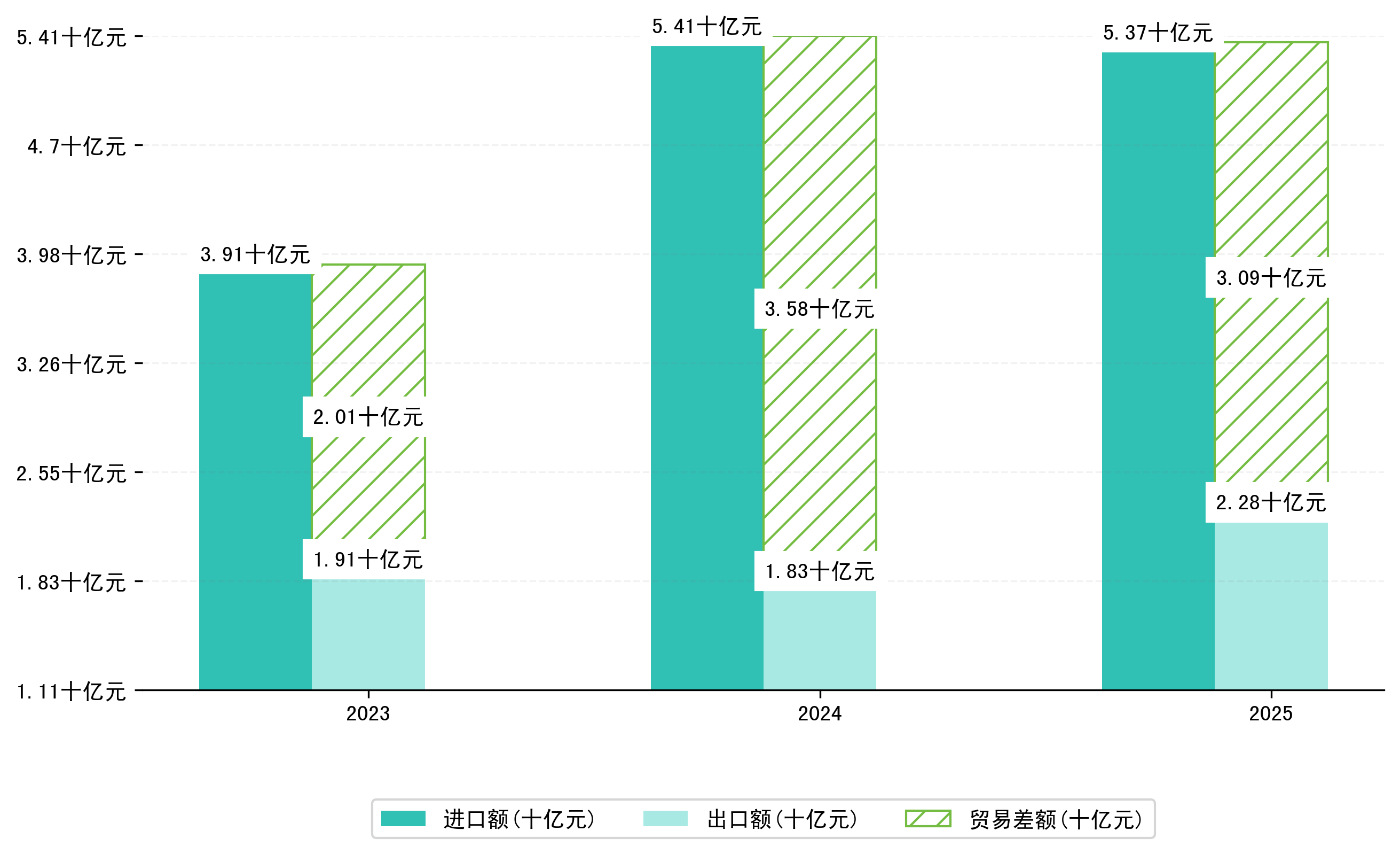以人民币计,2025年1月海口市贸易差额为30,9038,6595万元(贸易逆差),相比上月增加了1,1005,3942万元,即1486,7188万美元;相比上年同期增加了4,9327,9057万元,同比增加-13.76%。
