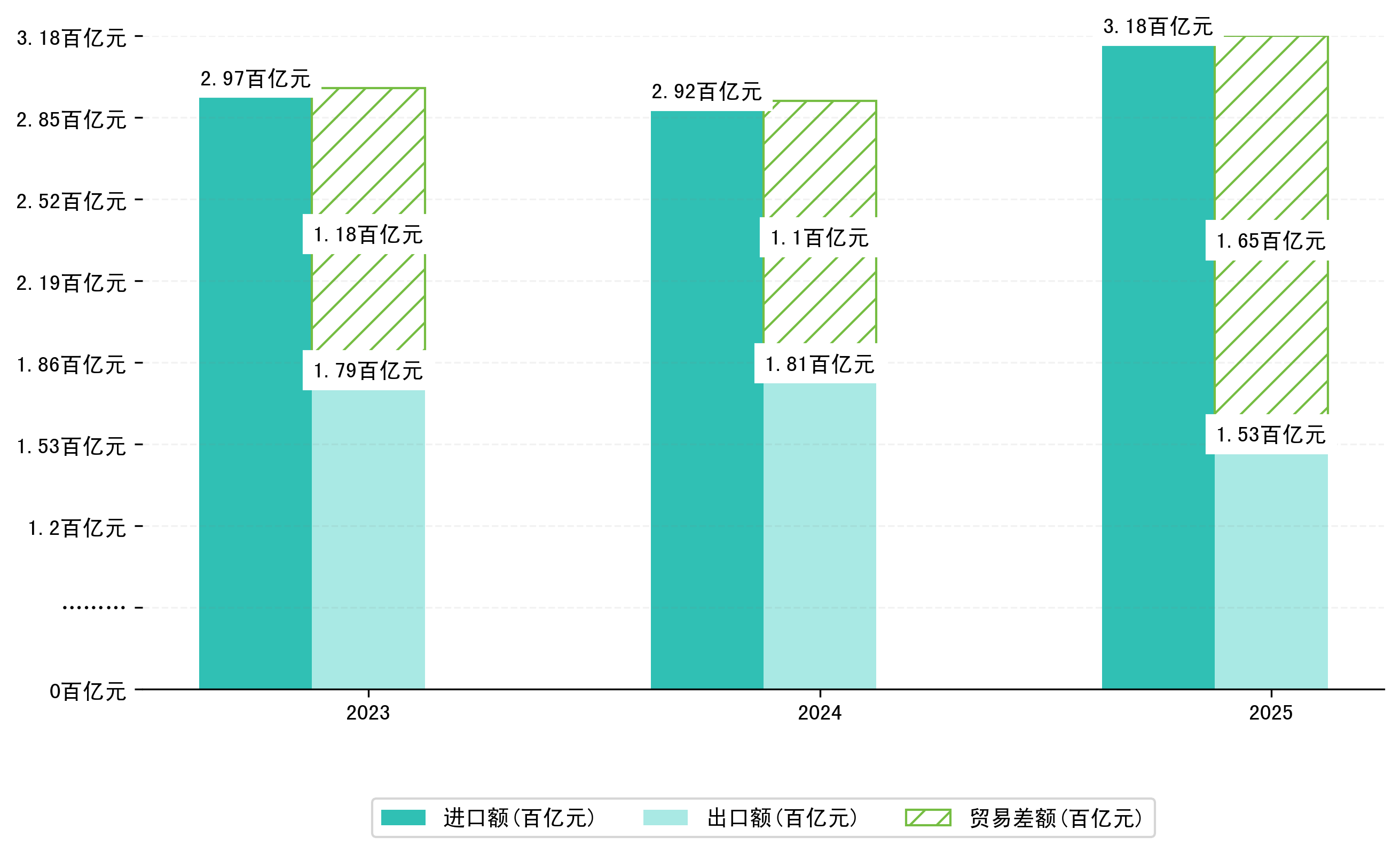 以人民币计,2025年7月海口市贸易差额为25,6327,6442万元(贸易逆差),相比上月减少了4,1001,6301万元,即5838,1945万美元;相比上年同期减少了30,5710,5668万元,同比减少-619.06%。