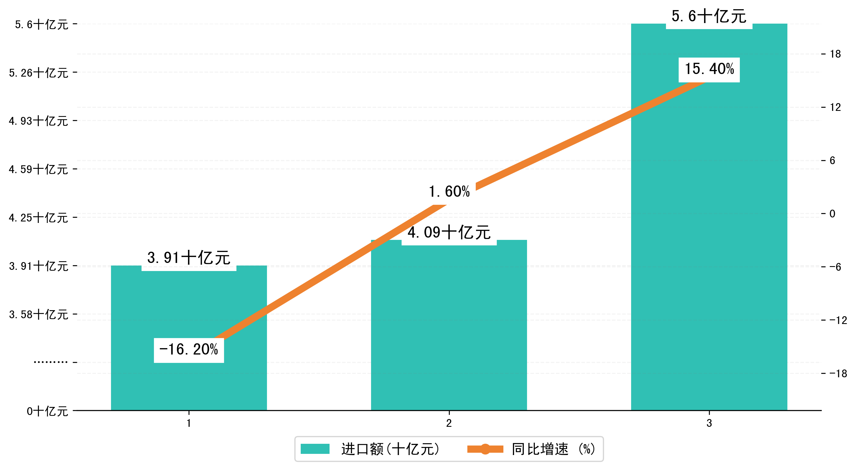 以人民币计,2023年3月海口市进口额为56,0096.1862万元,相比上月增加了15,0891.8339万元;相比上年同期增加了13,9622.1646万元,同比增加了15.40%。