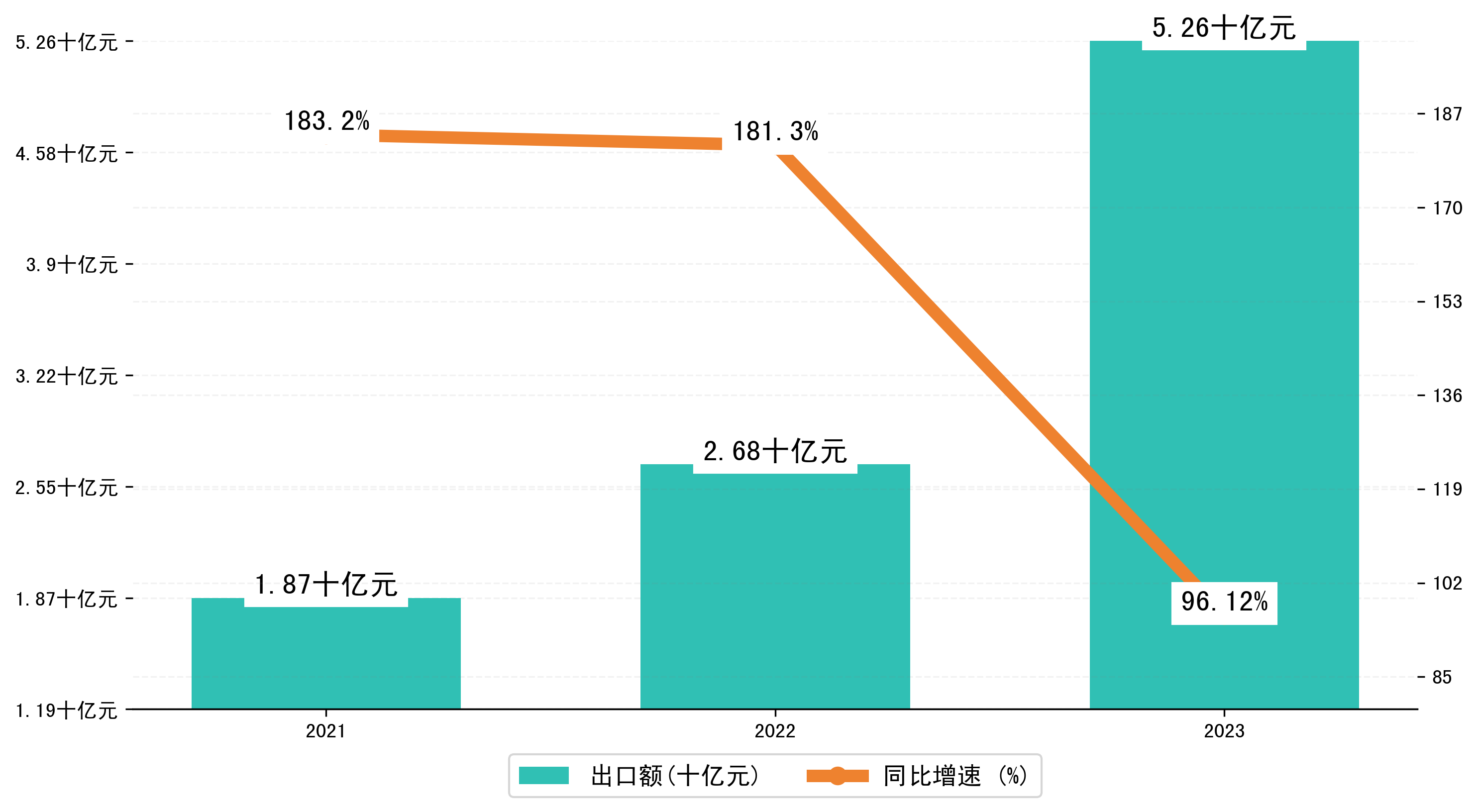 以人民币计,2023年1-3月海口市出口额为52,5559.128万元,相比上年同期增加了25,7575.6499万元,同比增加了96.10%。