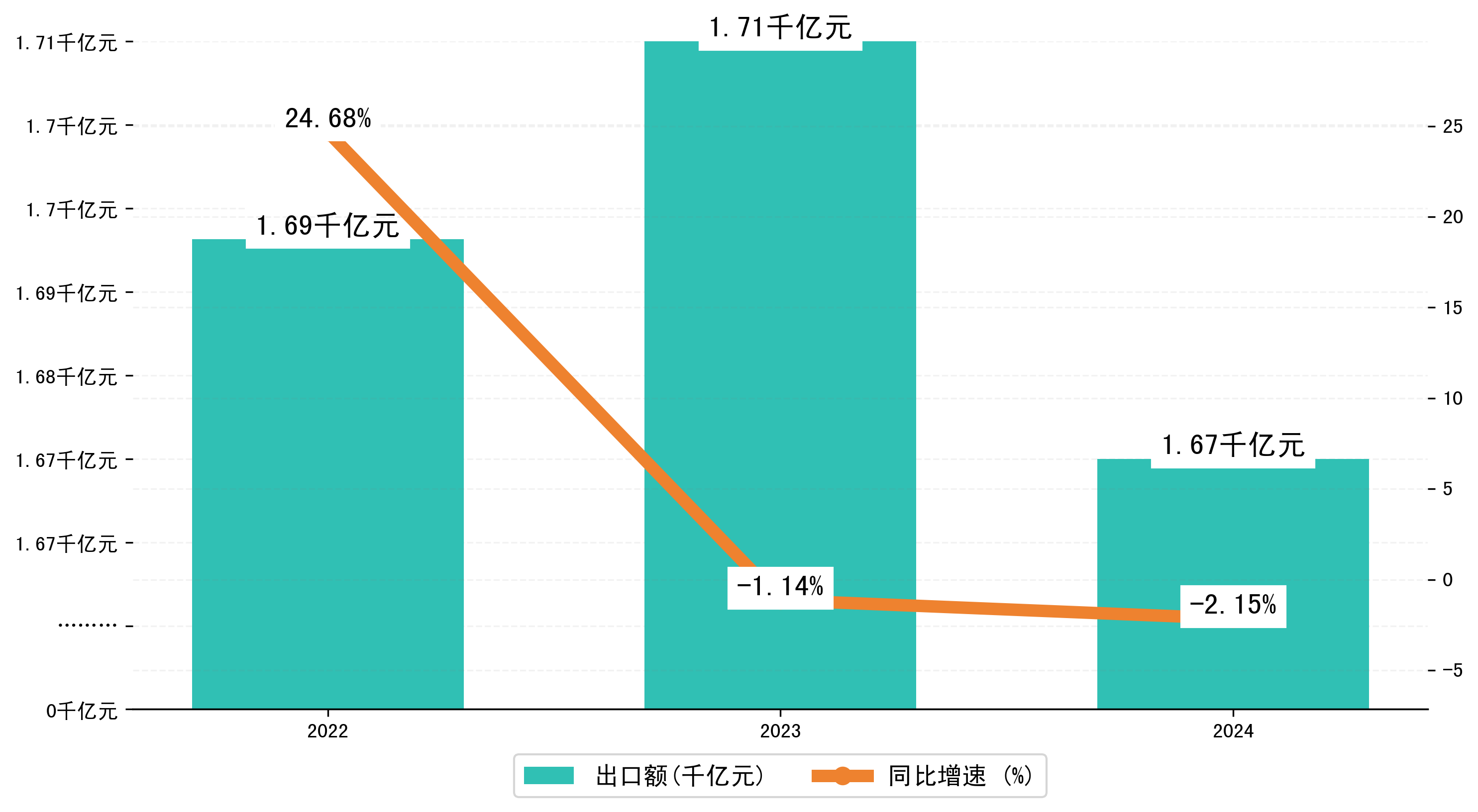 以美元计,2024年1-4月杭州市出口额为235,6235.8033万美元,相比上年同期减少了13,4692.1754万美元,同比增加-2.60%。