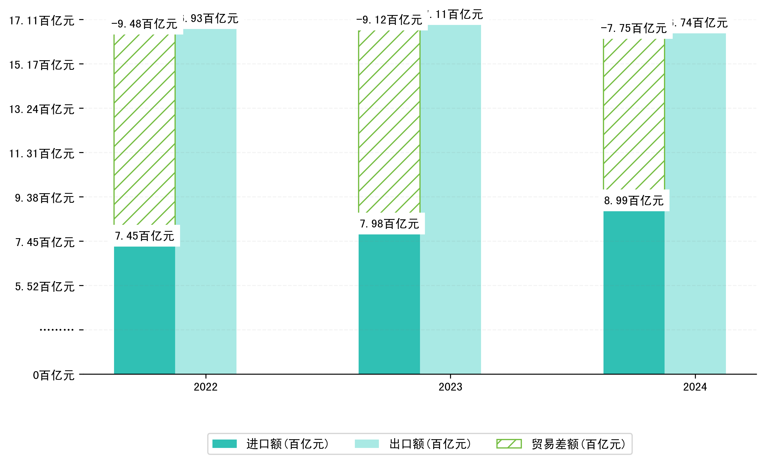 以人民币计,2024年1-4月杭州市进口额为899,2567.5779万元,相比上年同期增加了100,9478.9055万元,同比增加了12.10%。