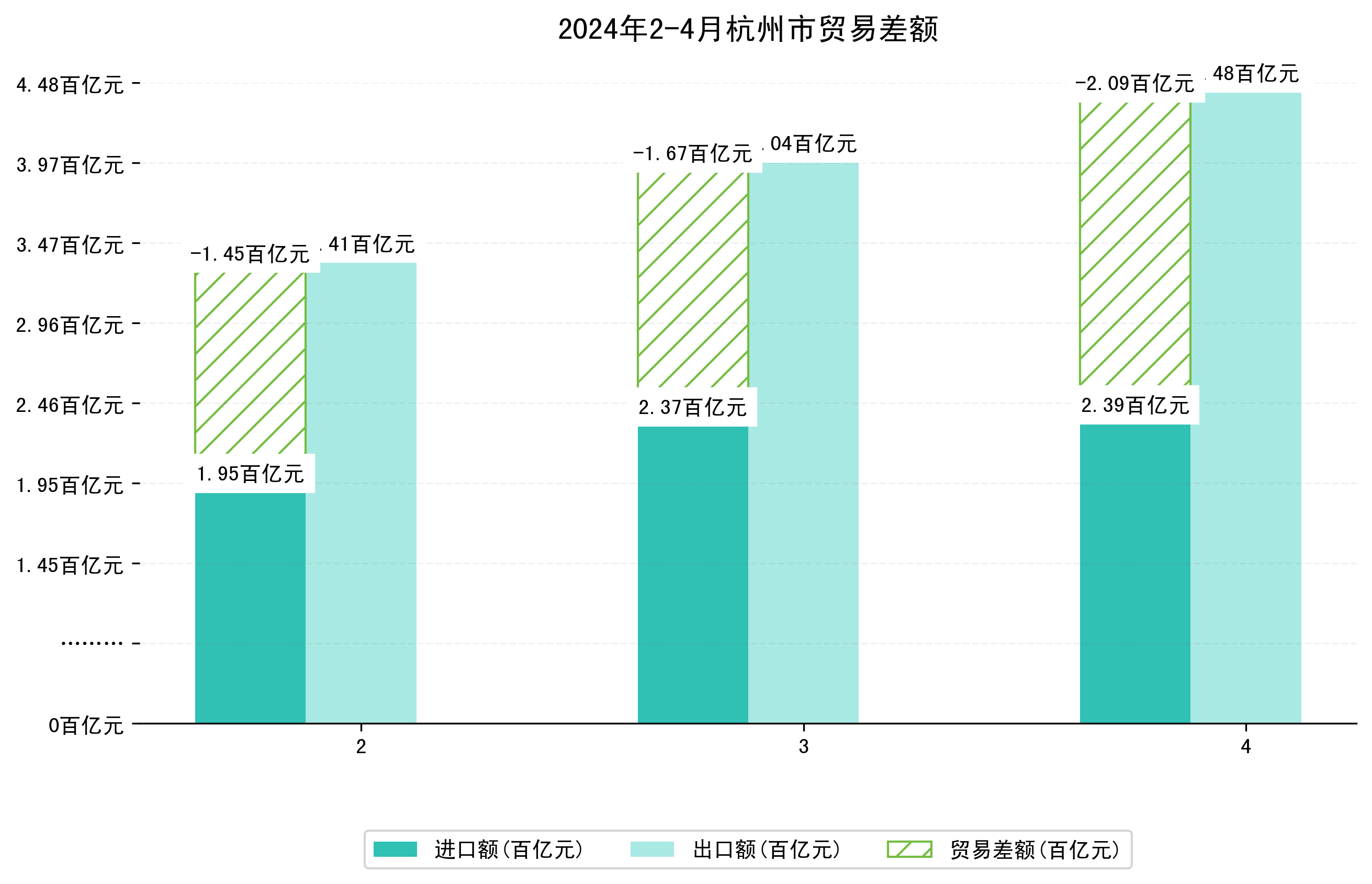 2024年4月杭州市进出口总额及进出口差额统计分析