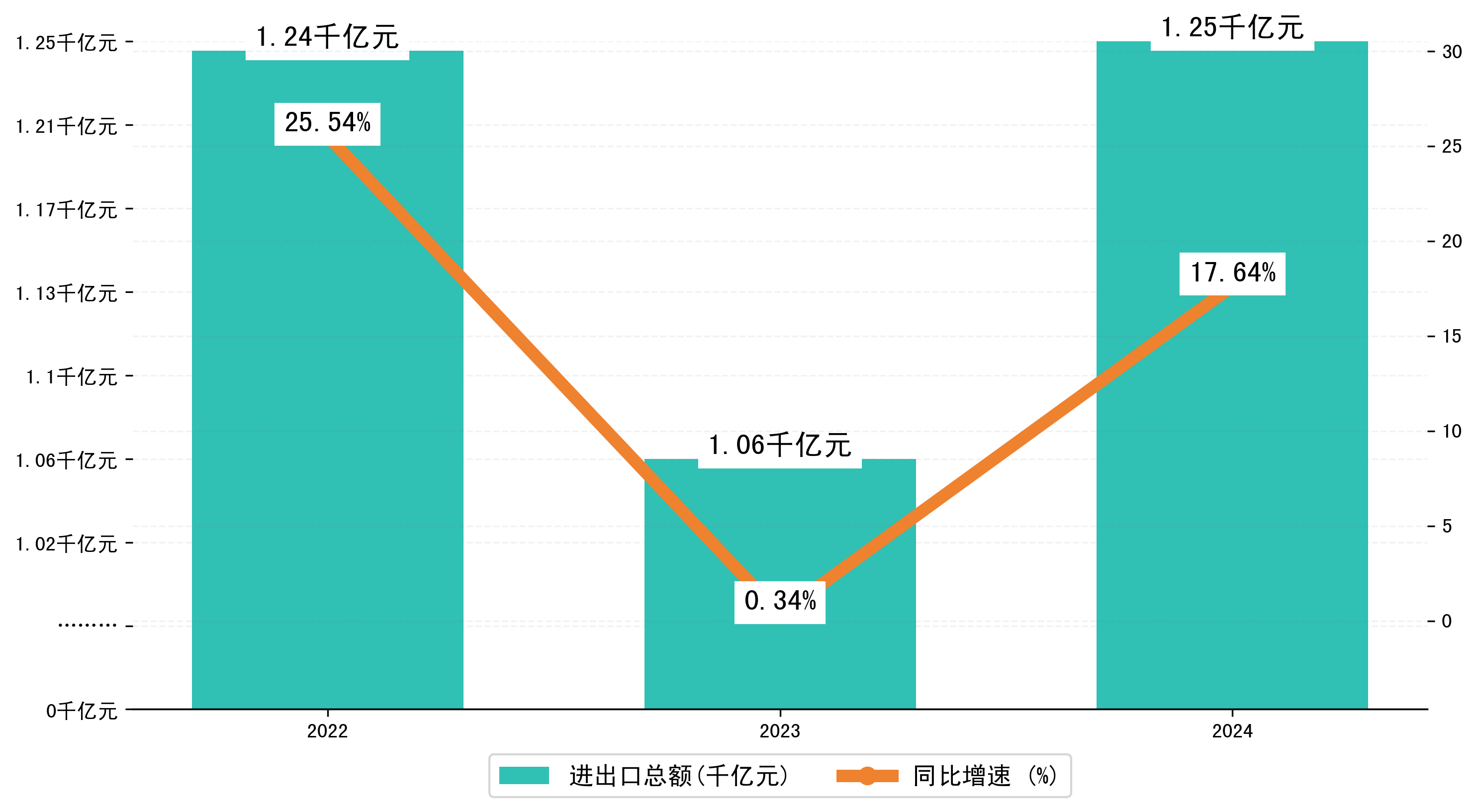 以人民币计,2024年1-2月杭州市进出口总额为1245,9789.1525万元,相比上年同期增加了186,8690.8169万元,同比增加了16.60%。
