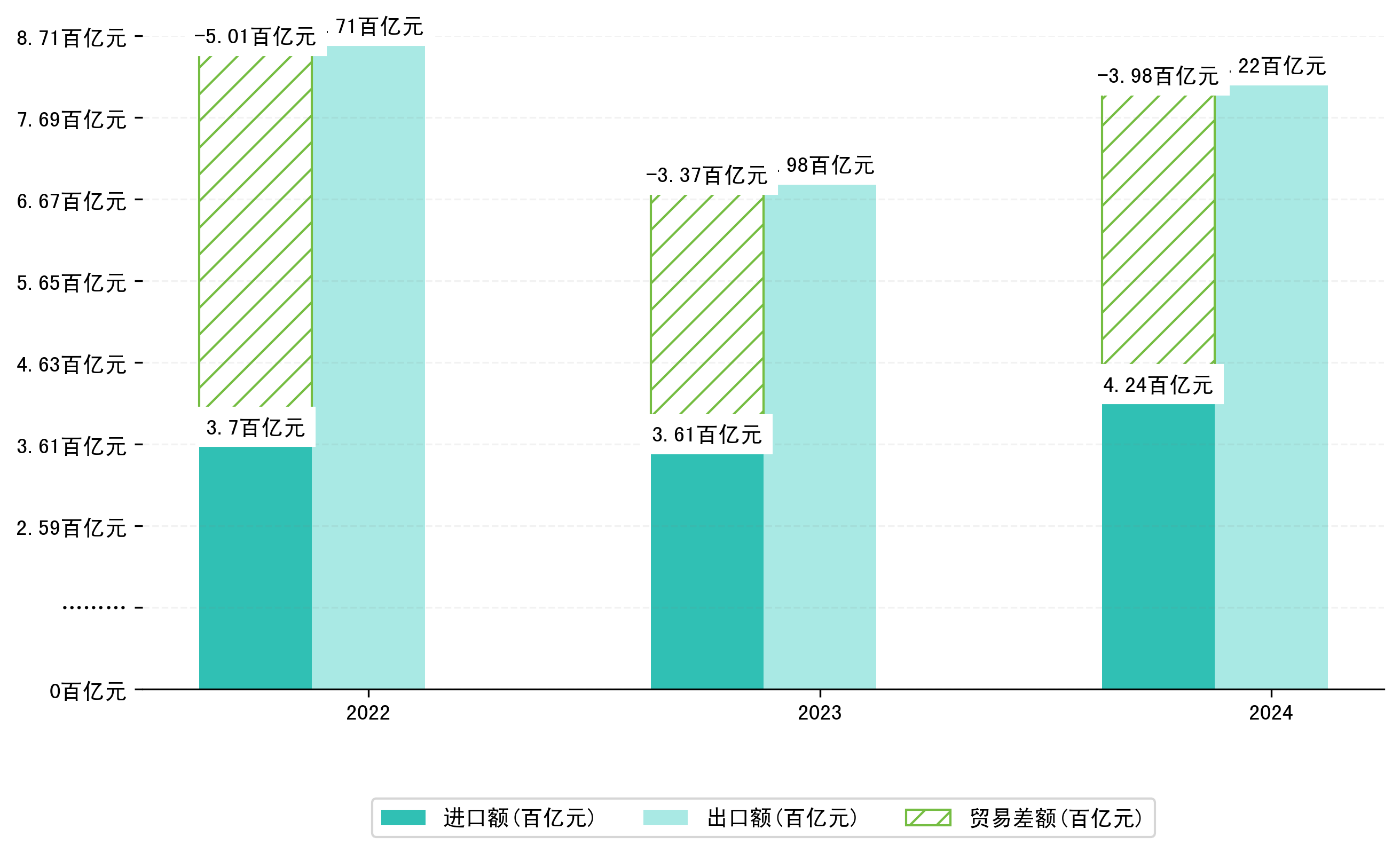 以人民币计,2024年1-2月杭州市贸易差额为398,4225,2435万元(贸易顺差),相比上年同期增加了61,6515,4695万元,同比增加18.31%。