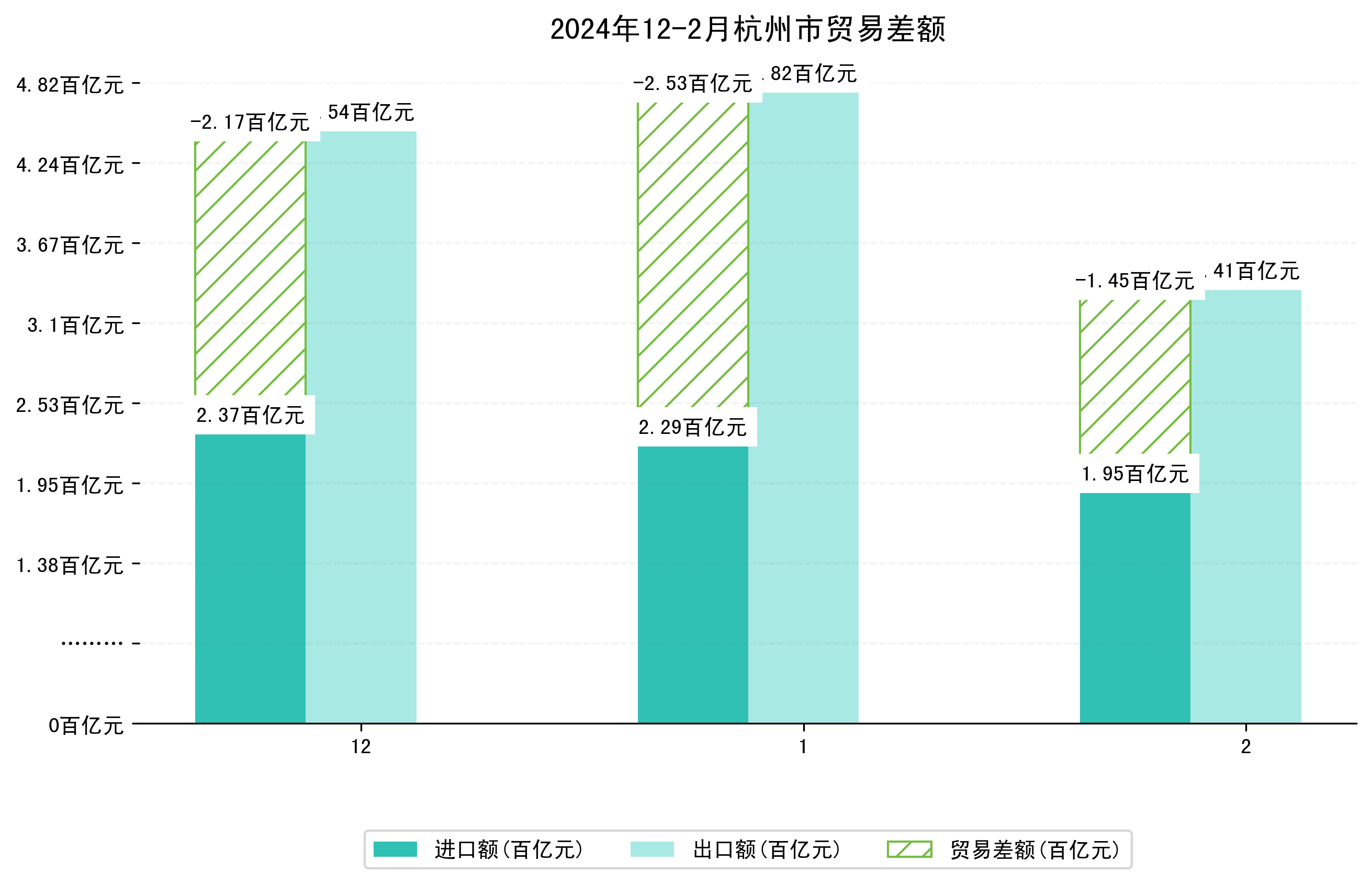 2024年2月杭州市进出口总额及进出口差额统计分析