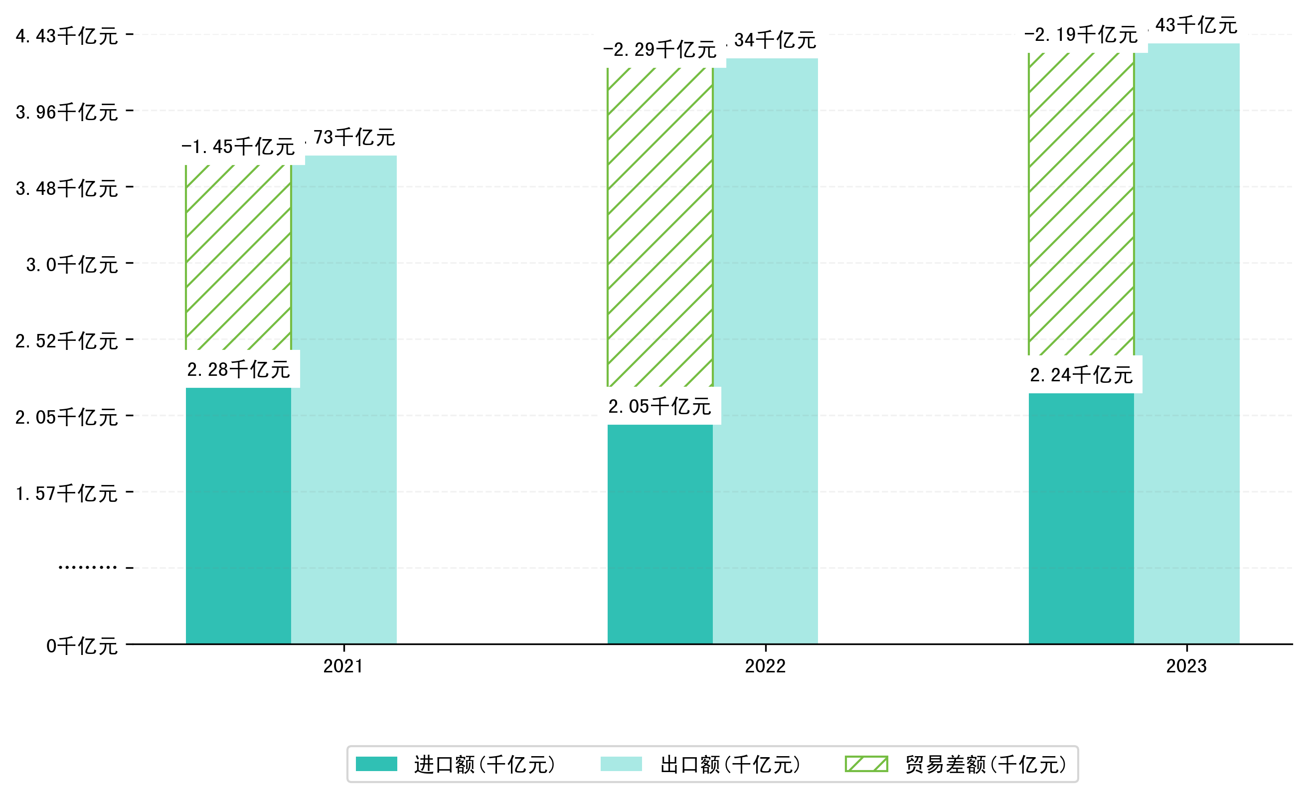 以人民币计,2023年1-10月杭州市贸易差额为2188,4745,9048万元(贸易顺差),相比上年同期减少了103,7610,9762万元,同比减少-4.53%。