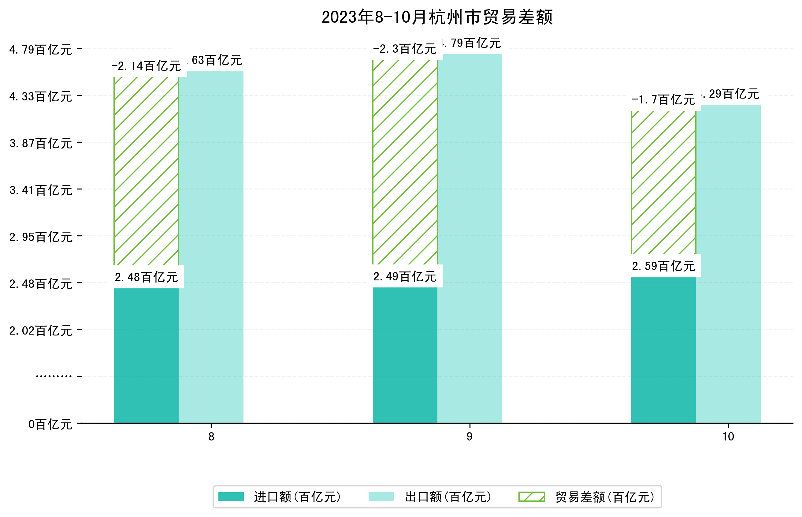 2023年10月杭州市进出口总额及进出口差额统计分析