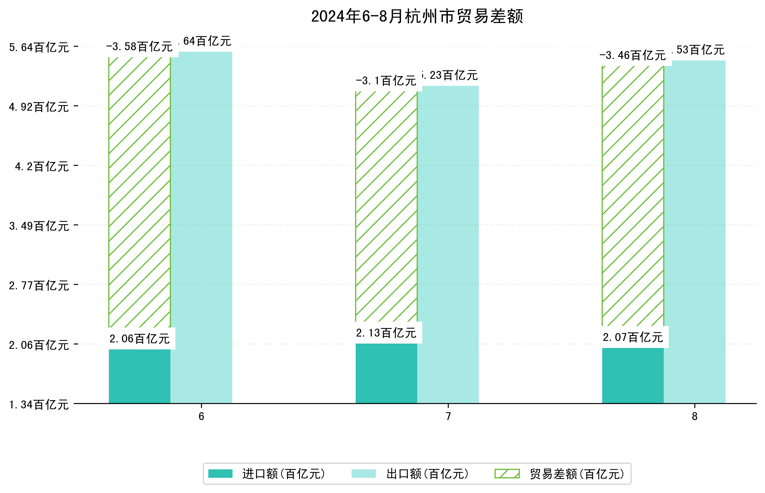 2024年8月杭州市进出口总额及进出口差额统计分析
