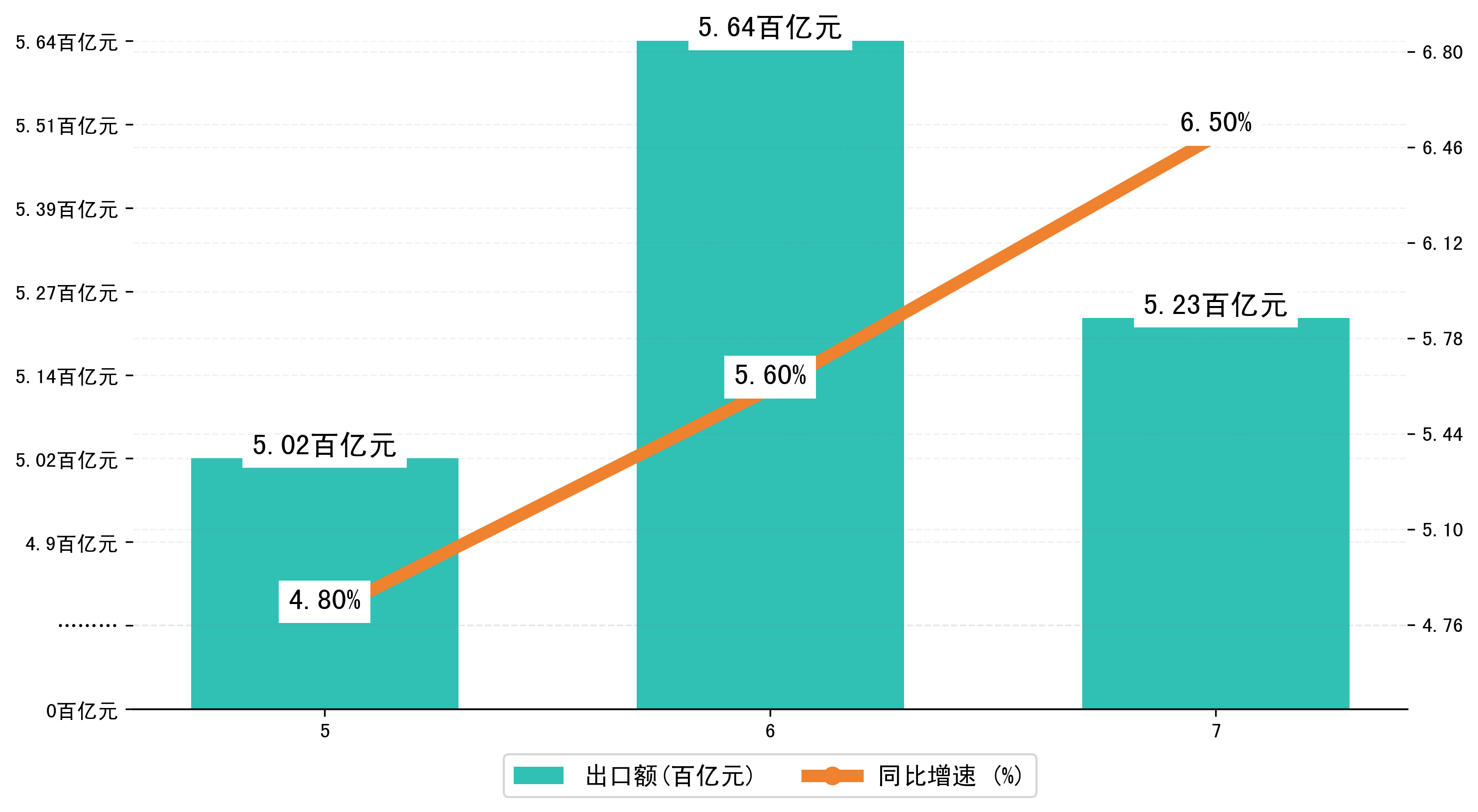 (图二:2024年5-7月杭州市出口额)