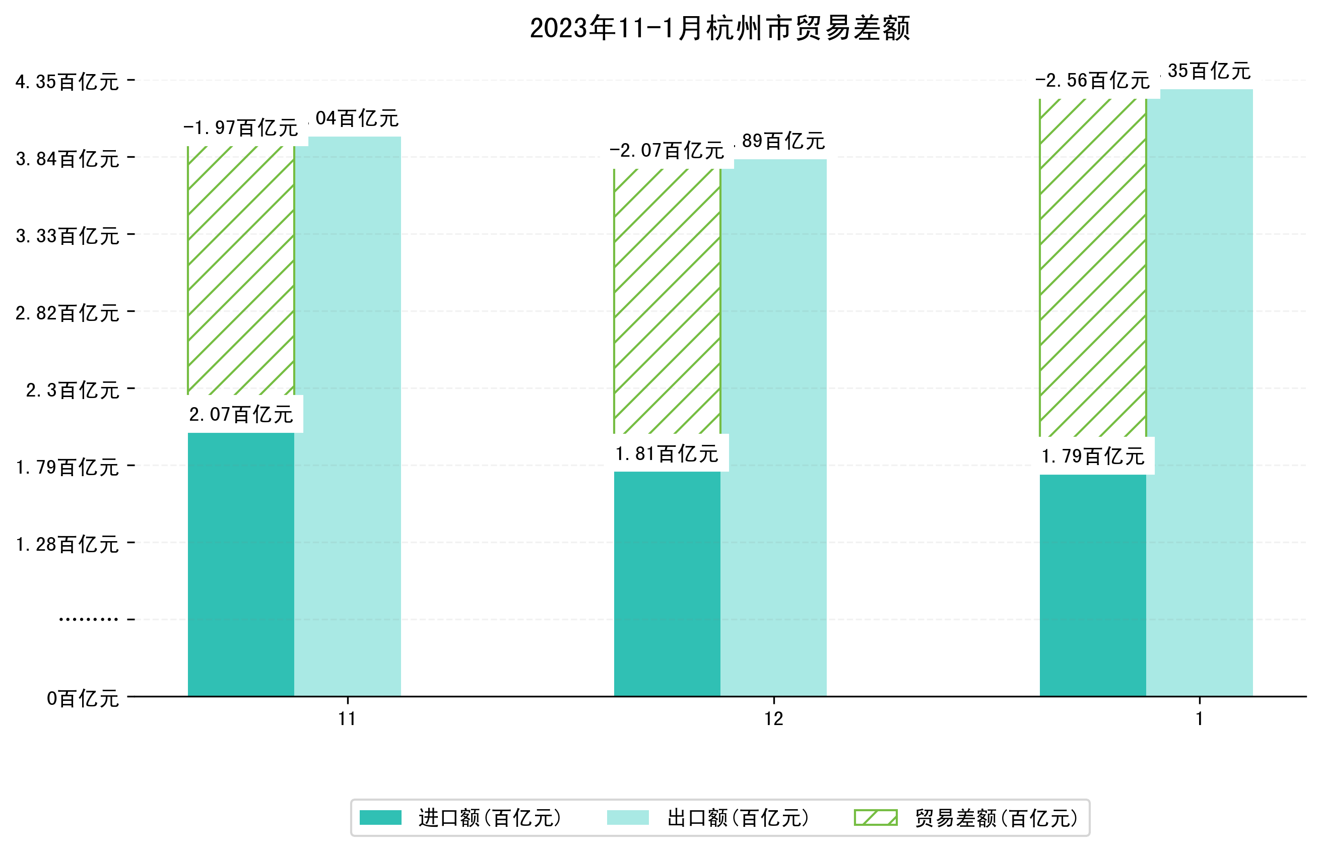 2023年1月杭州市进出口总额及进出口差额统计分析