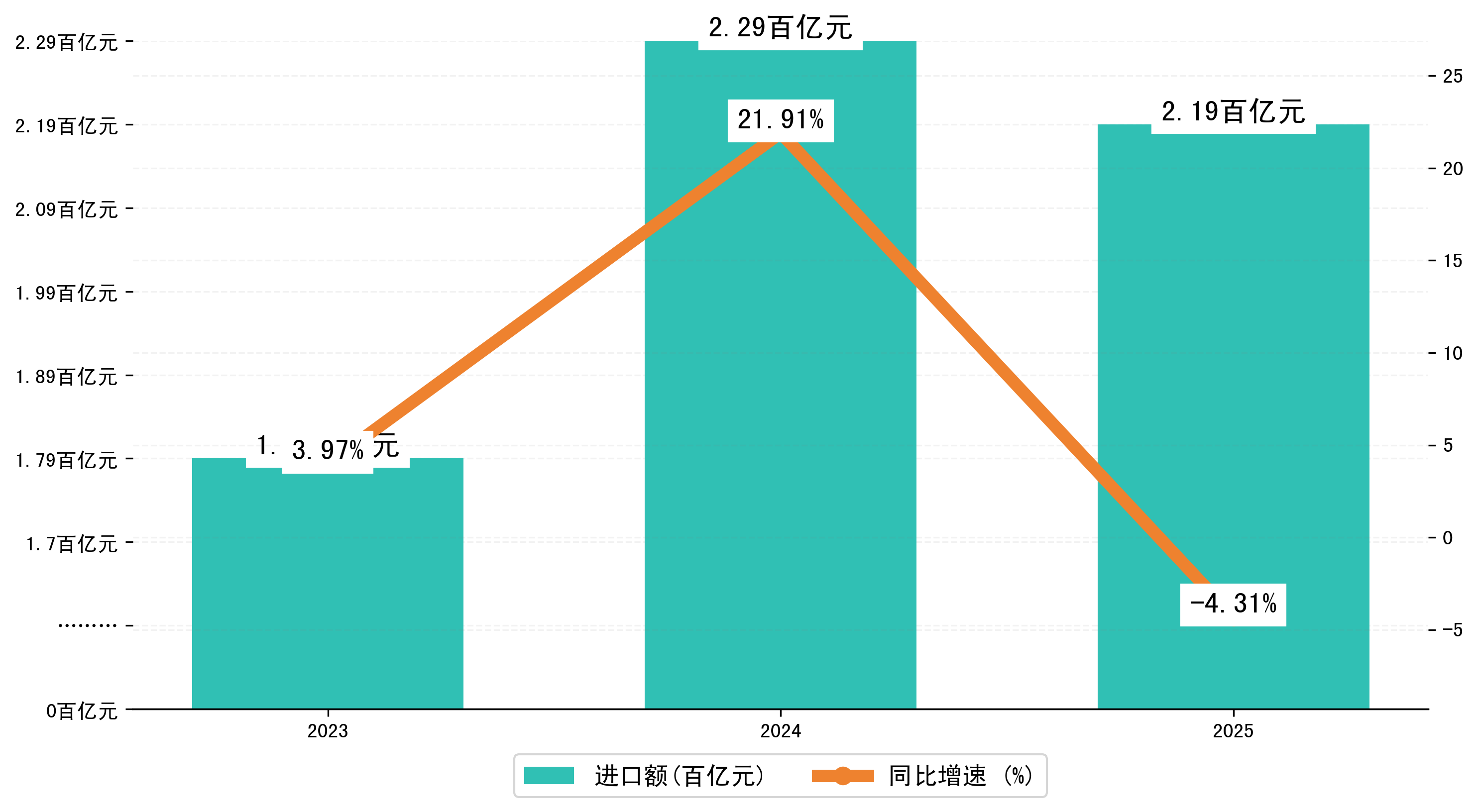 以美元计,2025年1月杭州市进口额为30,4036.6054万美元,相比上月减少了1,1119.2233万美元;相比上年同期减少了1,7867.4212万美元,同比减少-6.10%。