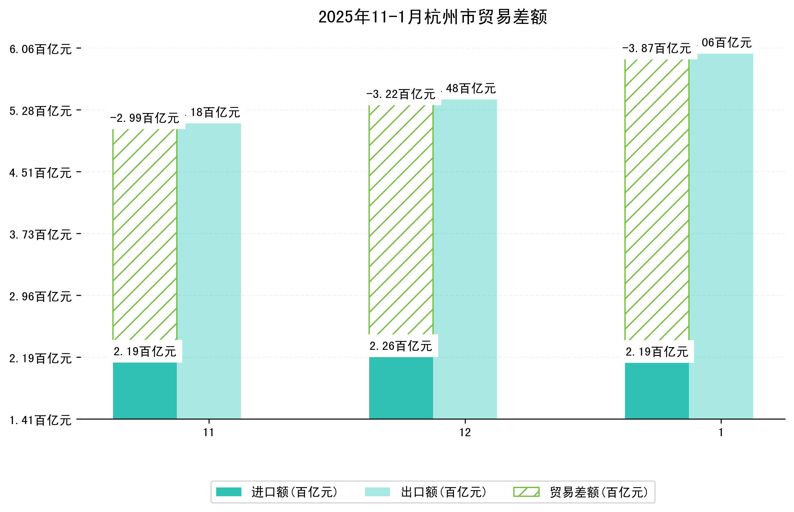 2025年1月杭州市进出口总额及进出口差额统计分析
