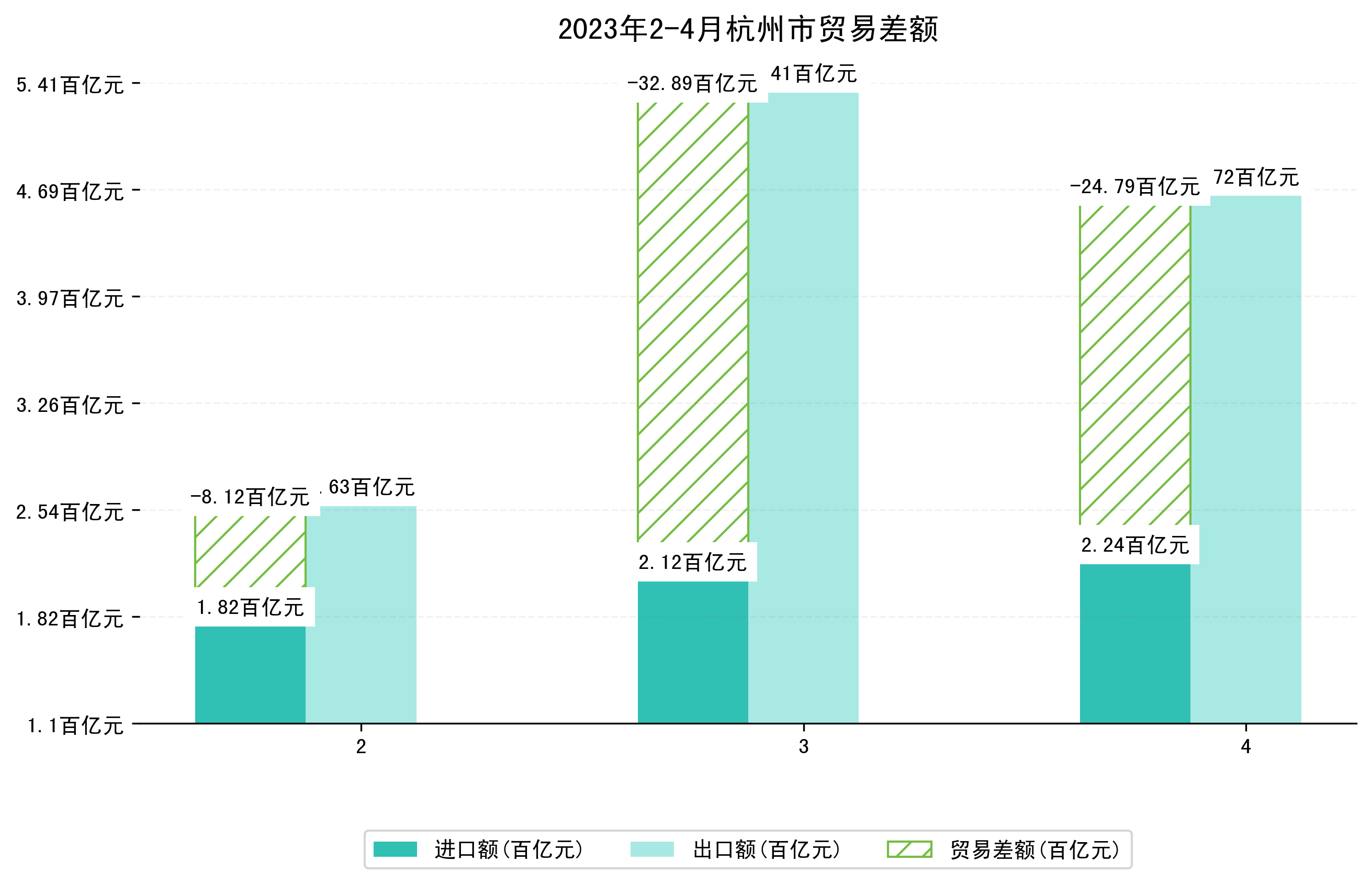 (图四:2023年2-4月杭州市贸易差额)
