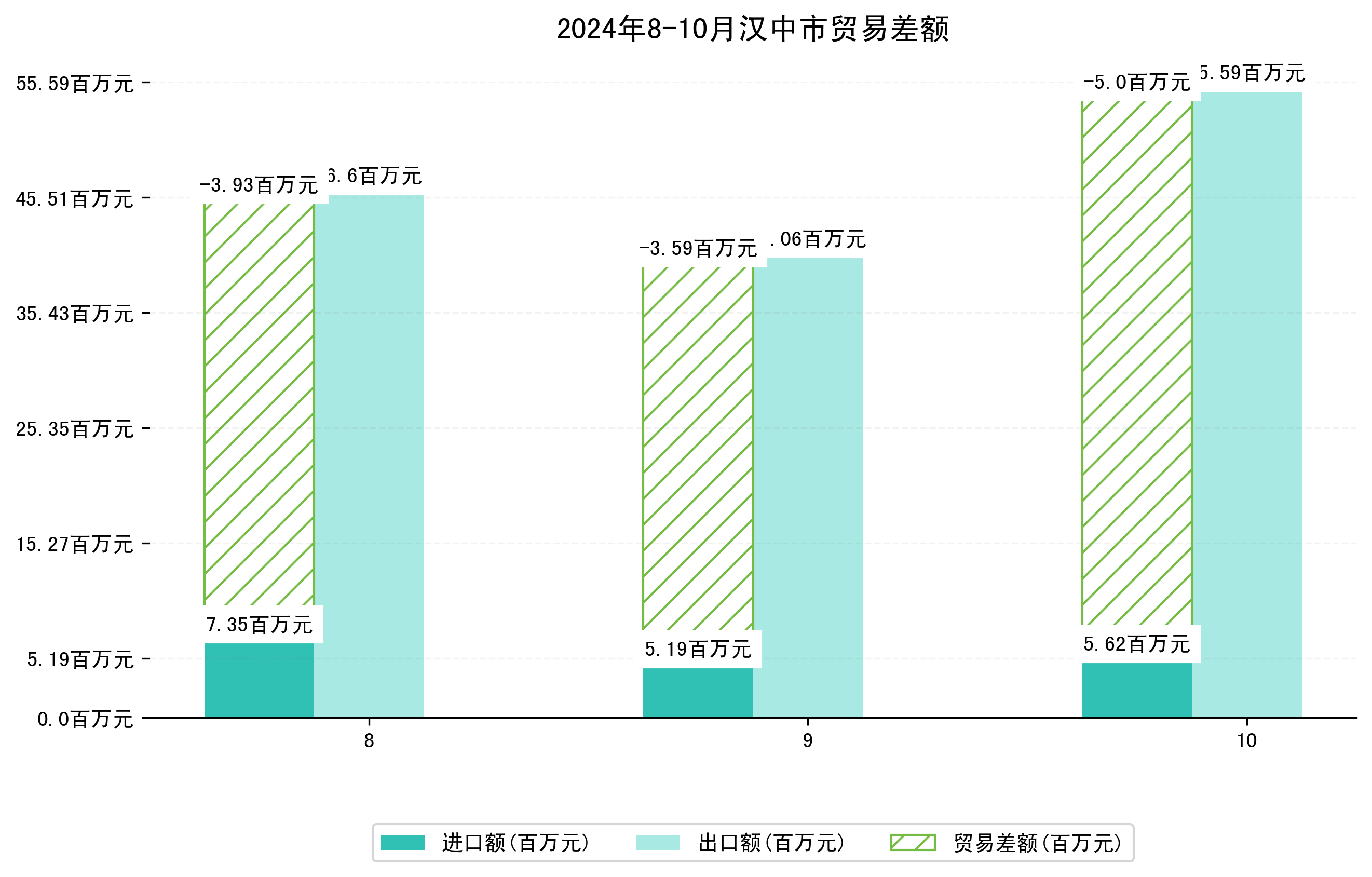 2024年10月汉中市进出口总额及进出口差额统计分析