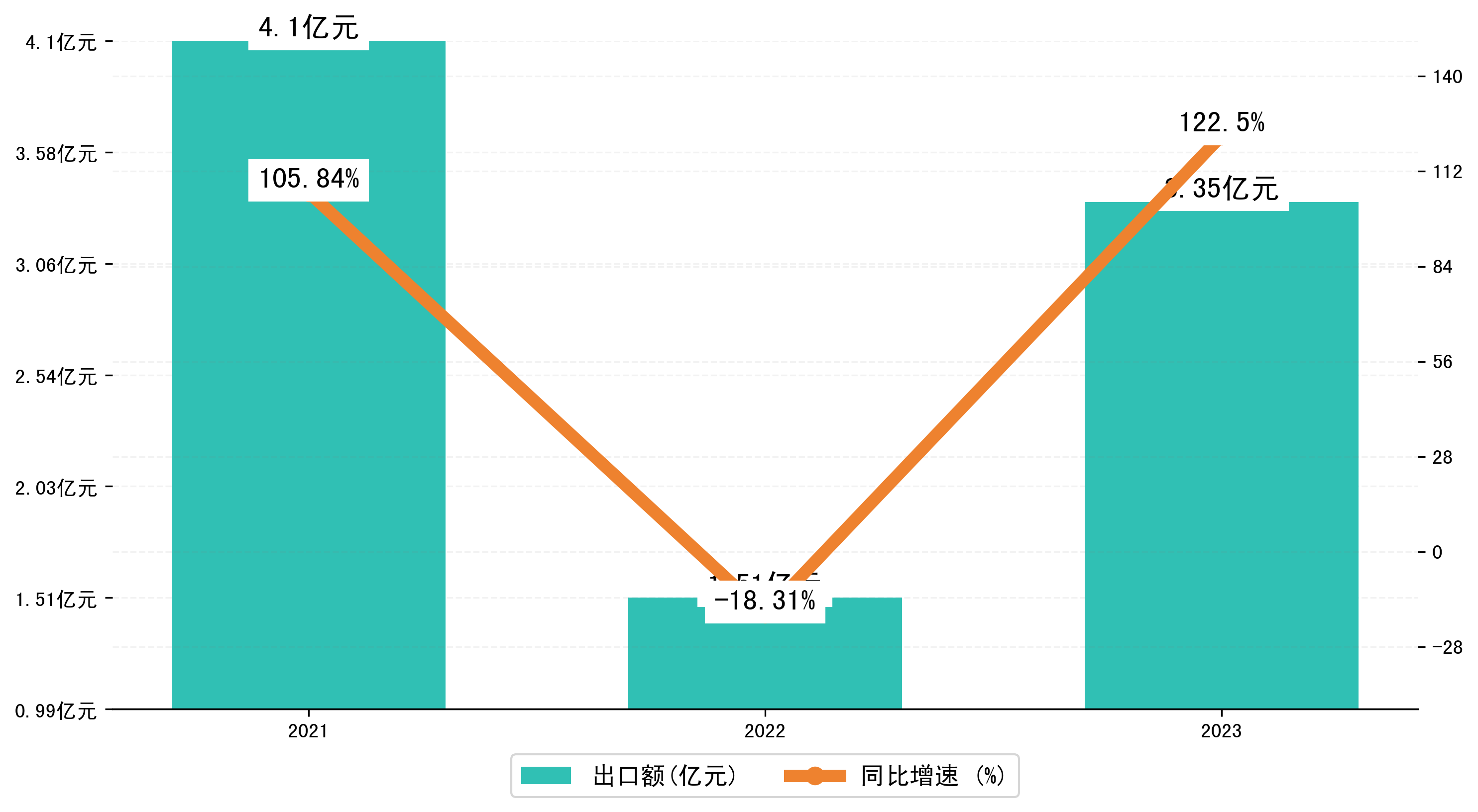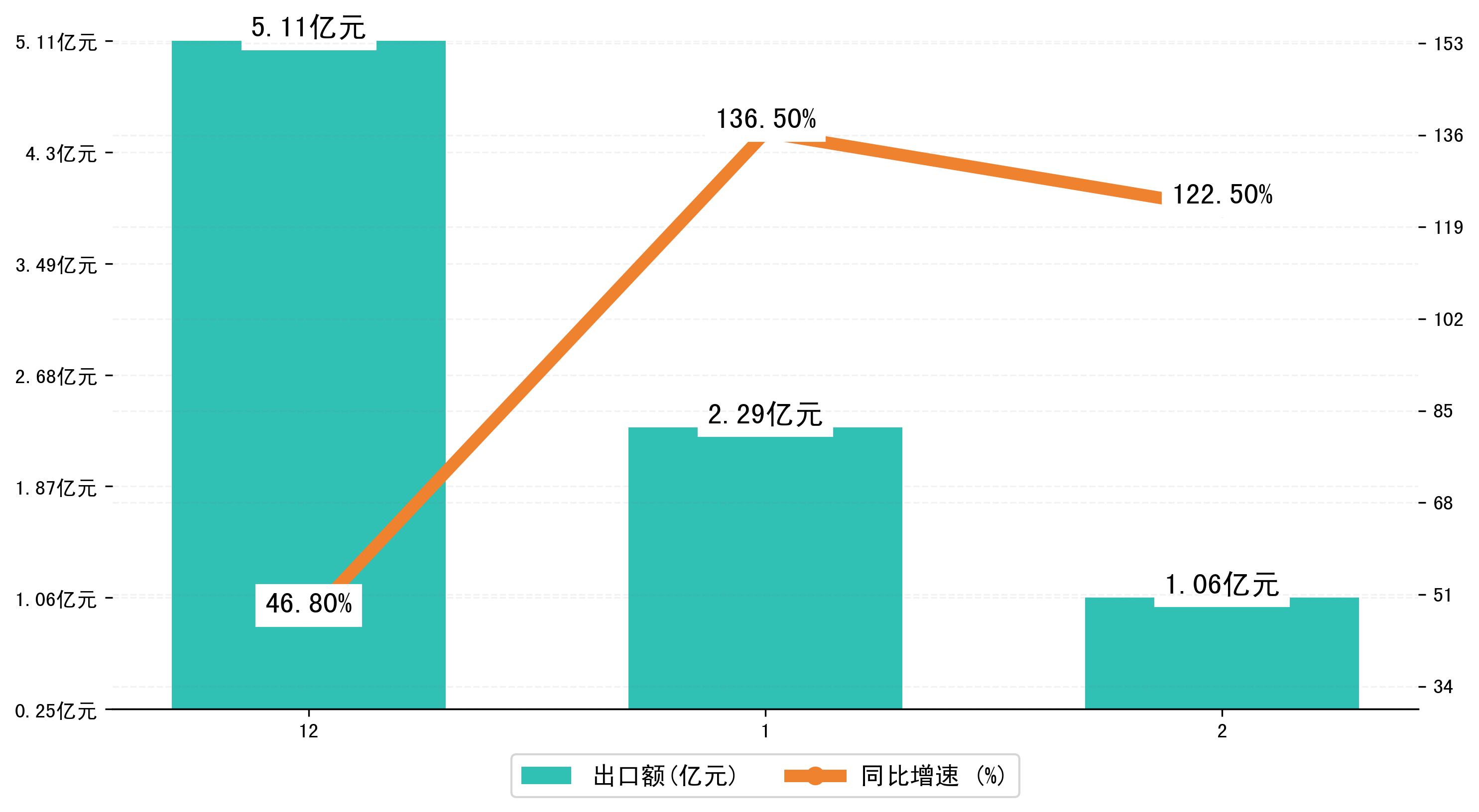 以人民币计,2023年1-2月汉中市出口额为3,3511.2028万元,相比上年同期增加了1,8449.7006万元,同比增加了122.50%。