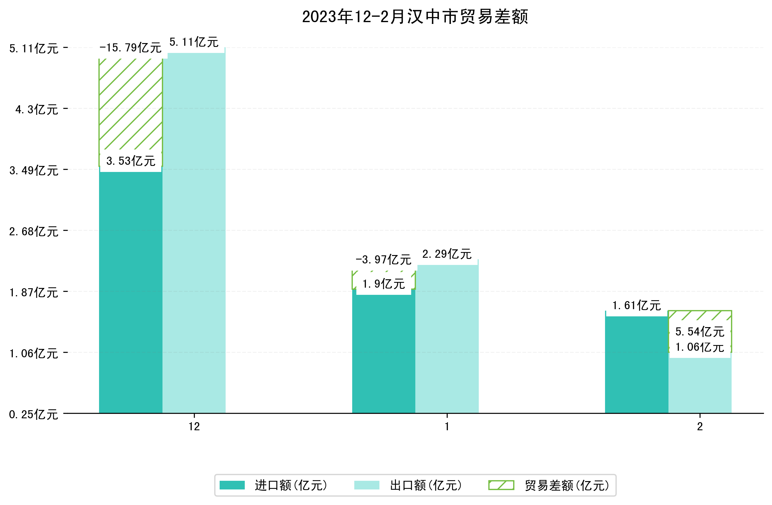 2023年2月汉中市进出口总额及进出口差额统计分析
