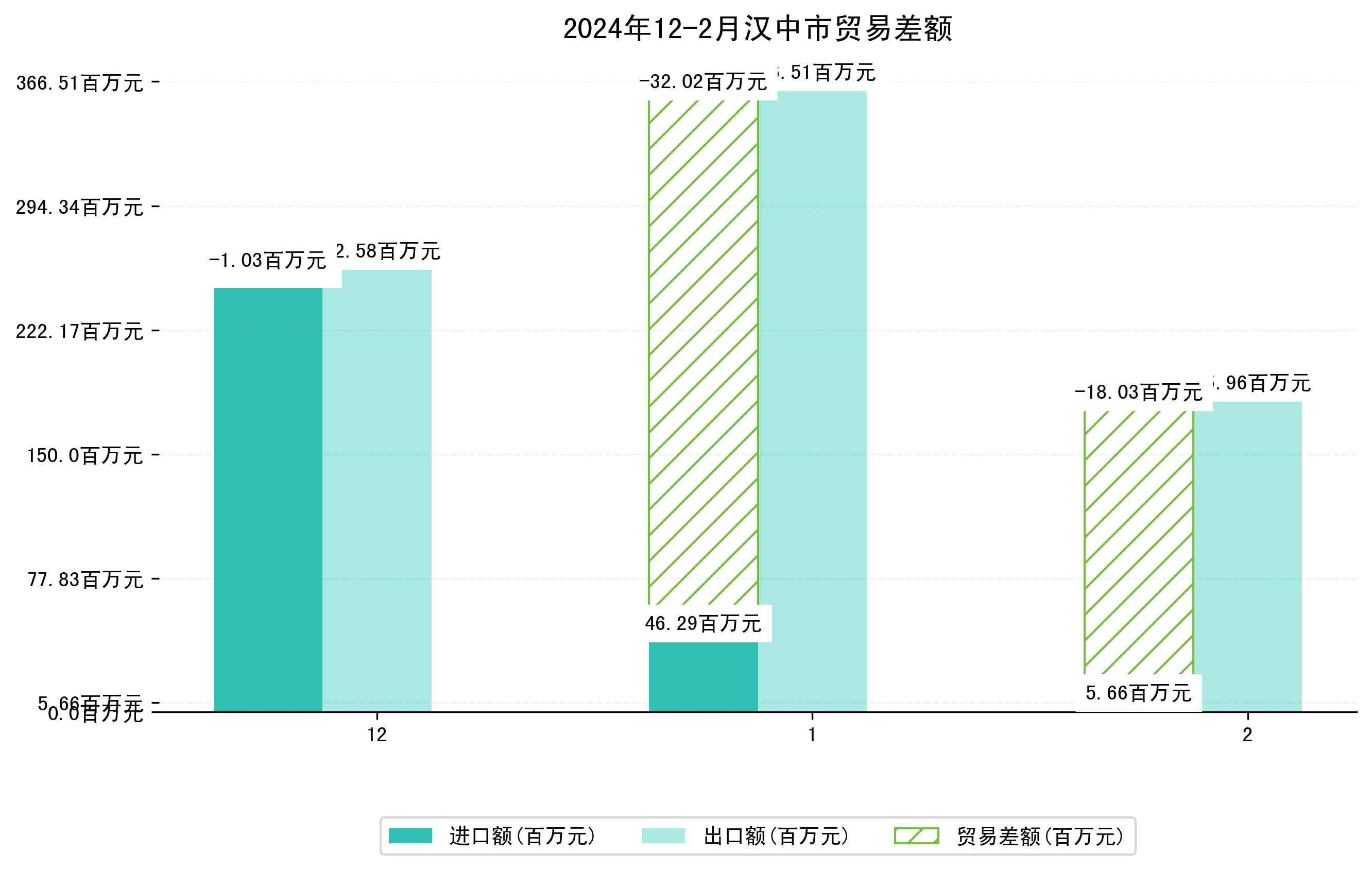 2024年2月汉中市进出口总额及进出口差额统计分析