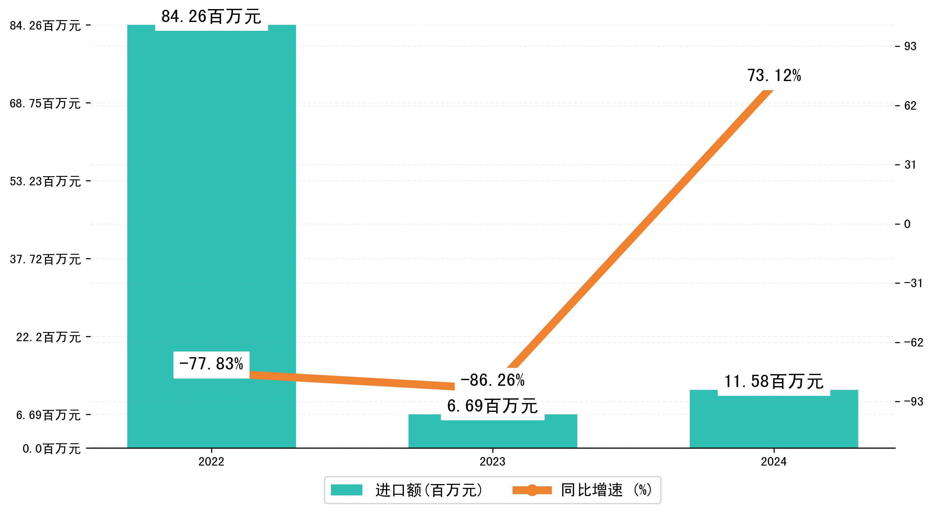 以美元计,2024年1-3月石河子市进口额为162.0755万美元,相比上年同期增加了64.9995万美元,同比增加67.00%。