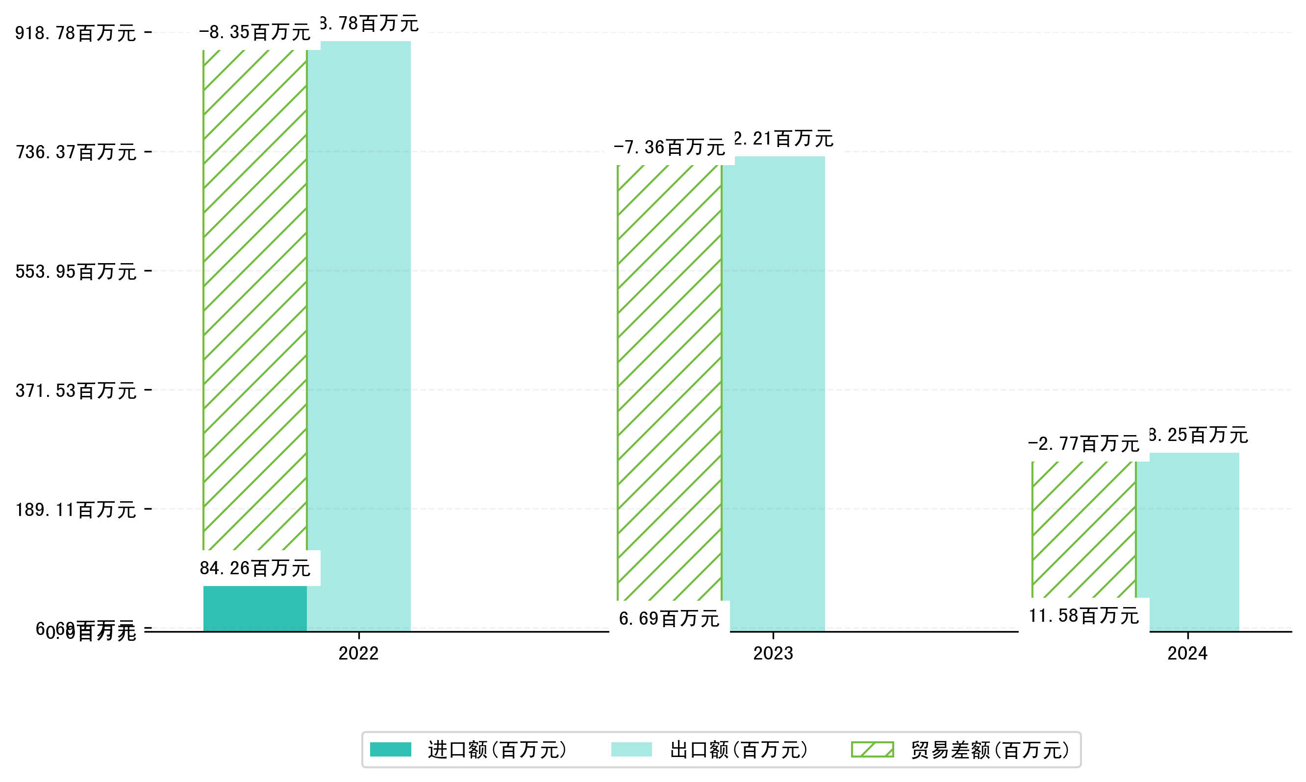 以美元计,2024年3月石河子市贸易差额为1893,4603万美元(贸易顺差),相比上月增加了795,3375万美元;相比上年同期减少了2369,5739万美元,同比减少-55.58%。