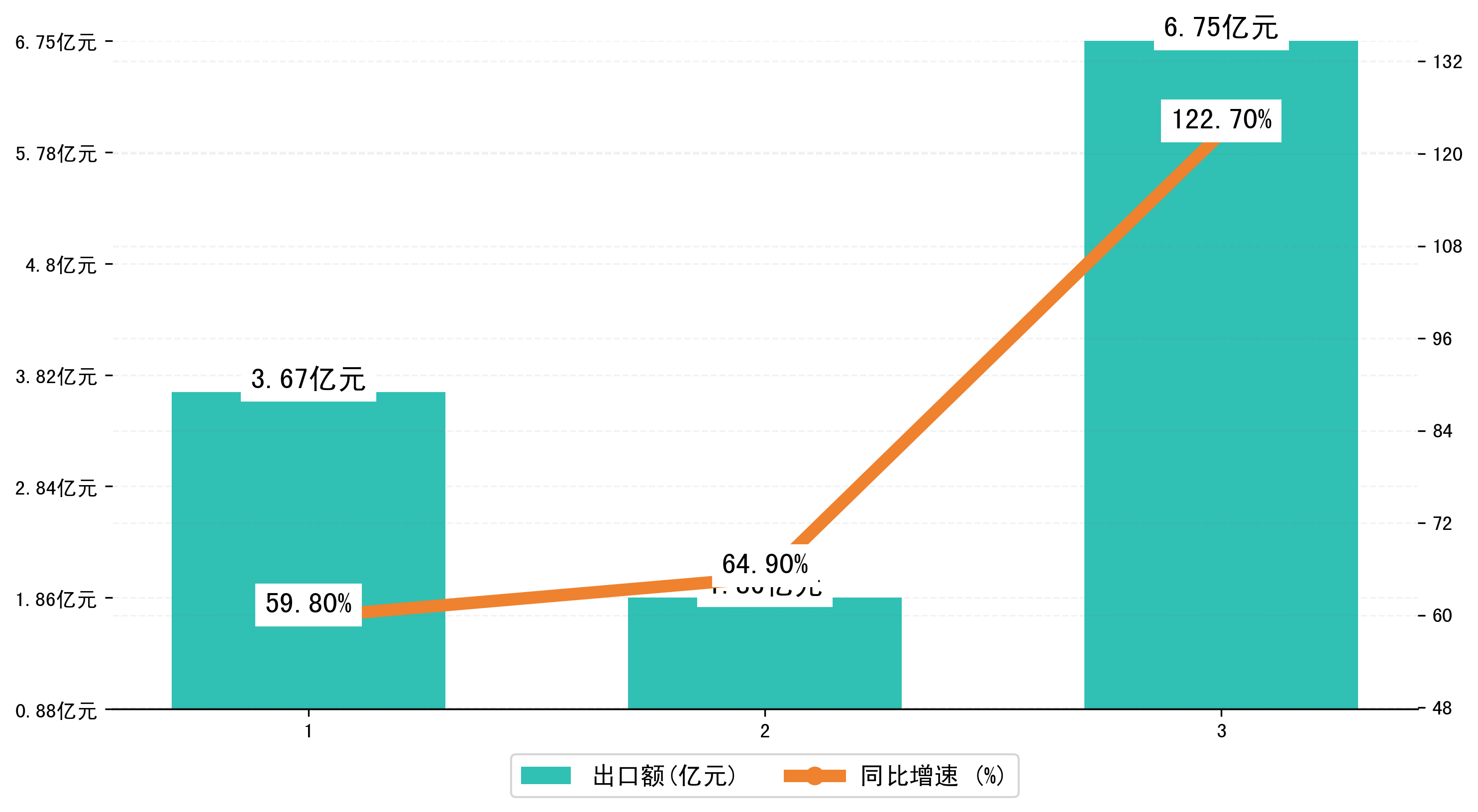 以人民币计,2024年1-3月汉中市出口额为12,2797.1871万元,相比上年同期增加了6,3115.5727万元,同比增加了122.70%。