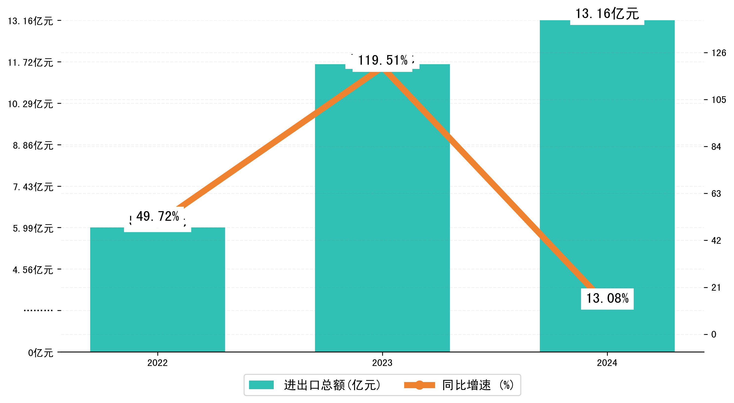 以美元计,2024年1-3月汉中市进出口总额为1,8528.0057万美元,相比上年同期增加了1613.3191万美元,同比增加14.10%。