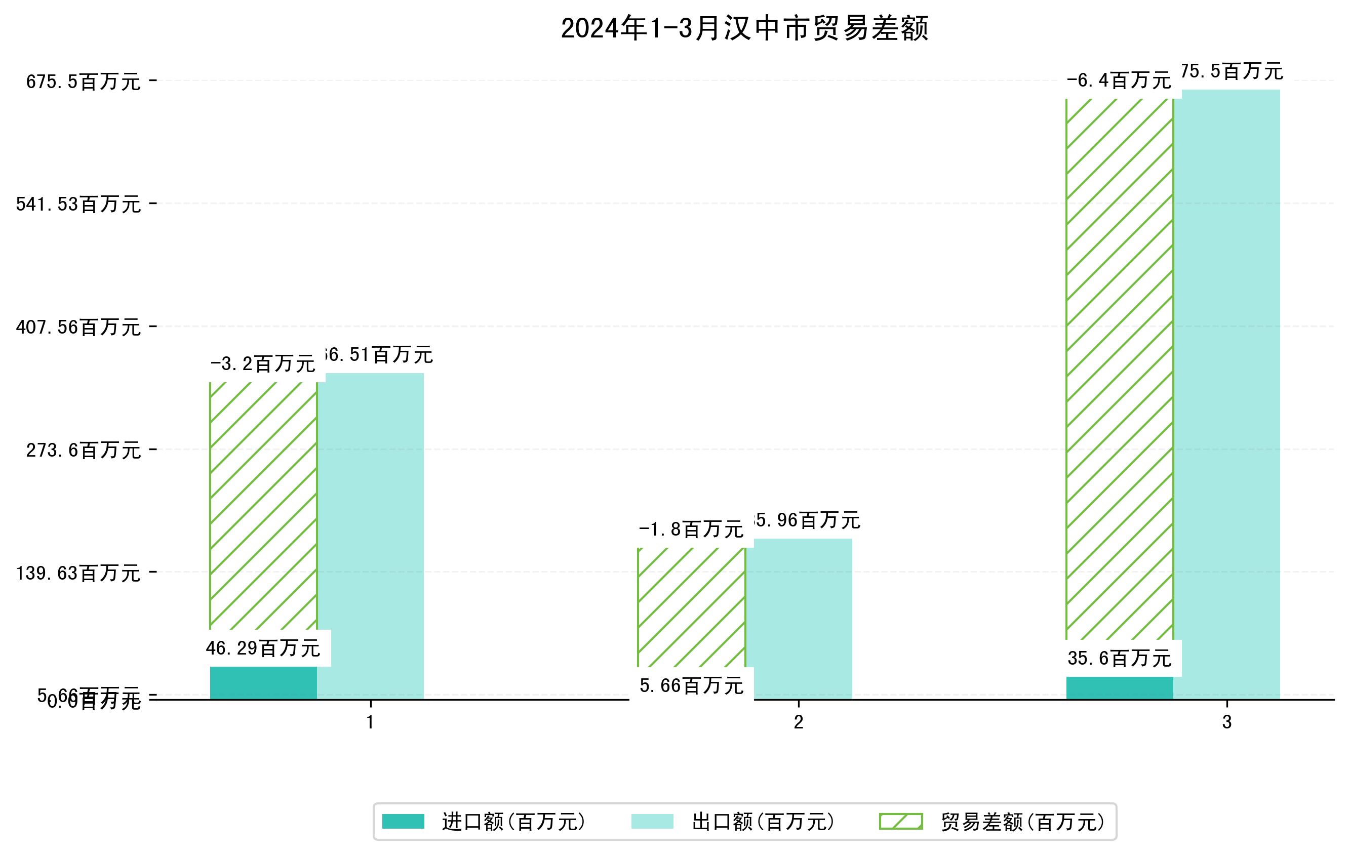 2024年3月汉中市进出口总额及进出口差额统计分析