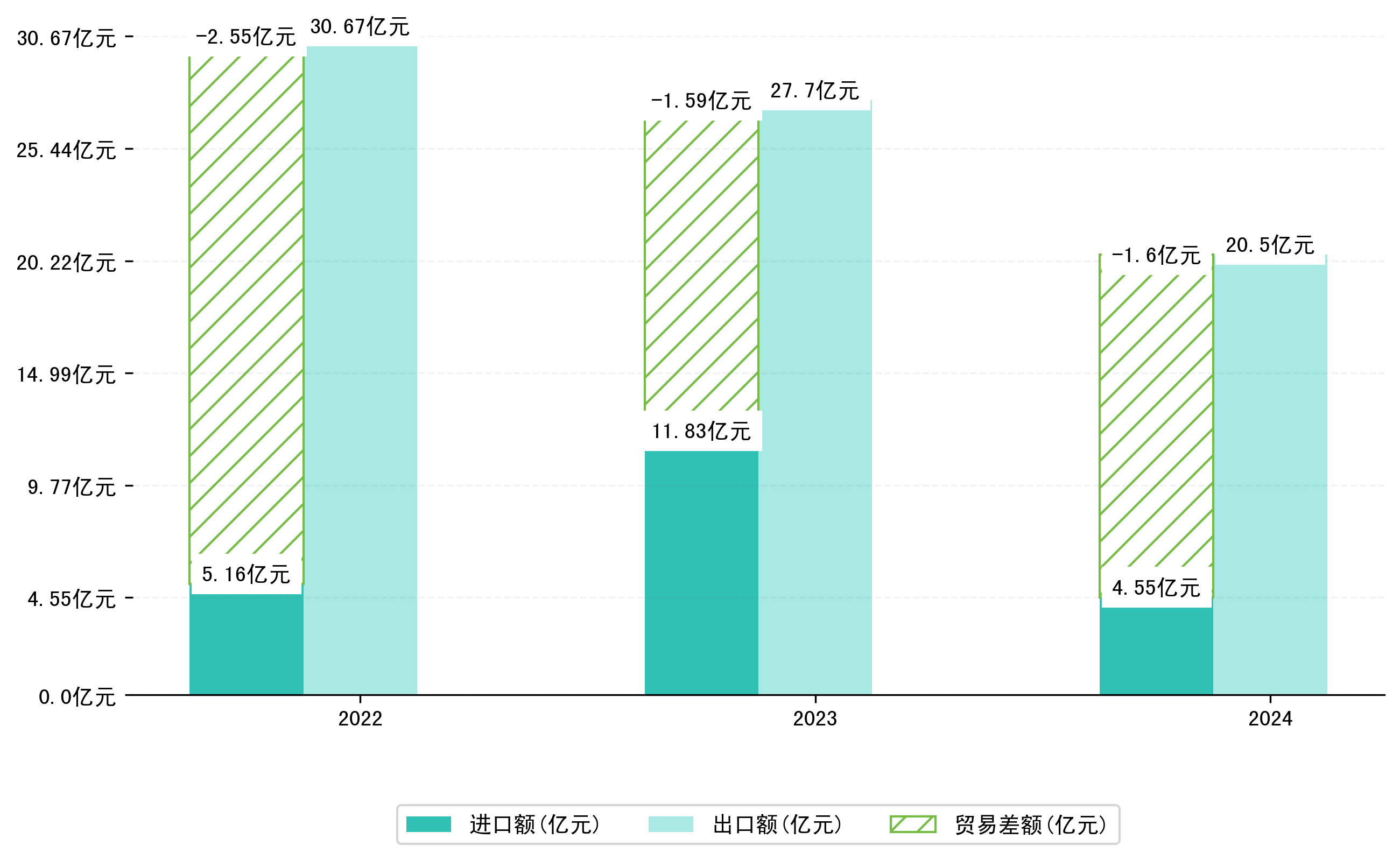 以美元计,2024年1-12月汉中市贸易差额为2,2485,0472万美元(贸易顺差),相比上年同期增加了306,4495万美元,同比增加1.38%。