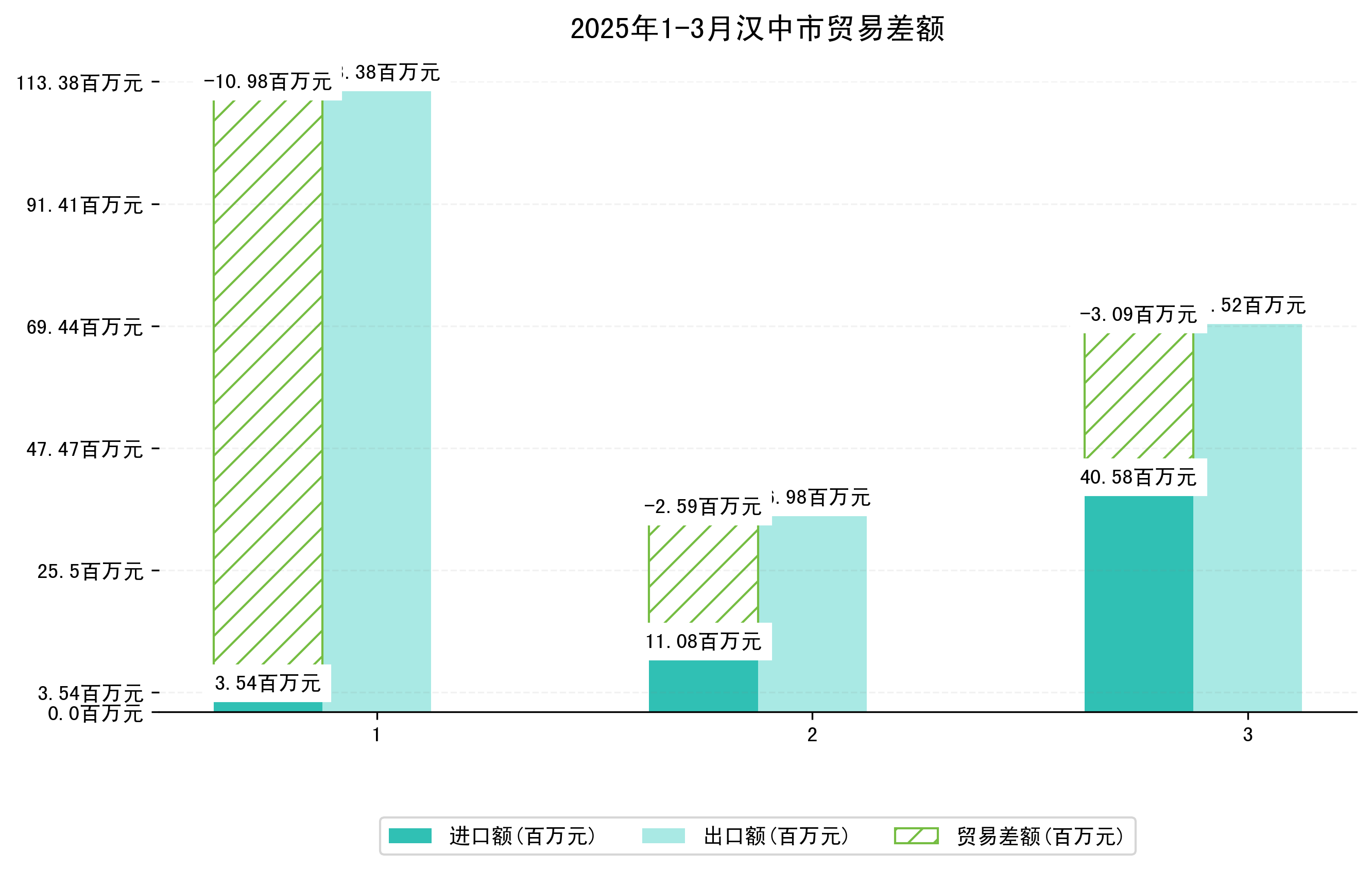 2025年3月汉中市进出口总额及进出口差额统计分析
