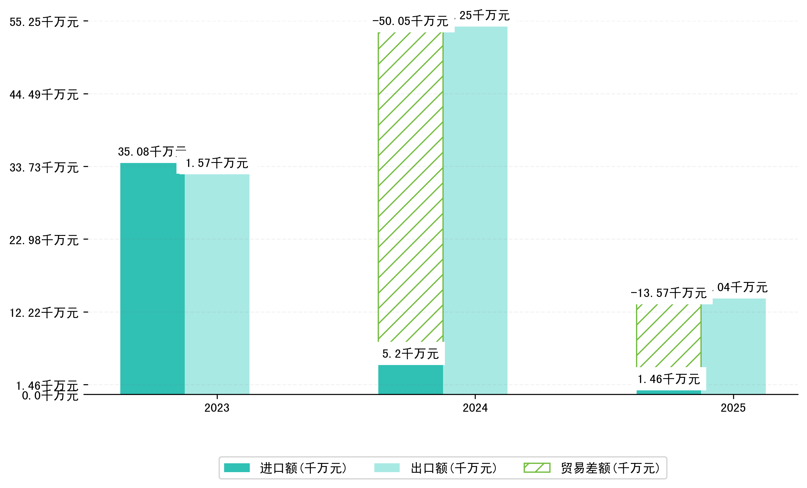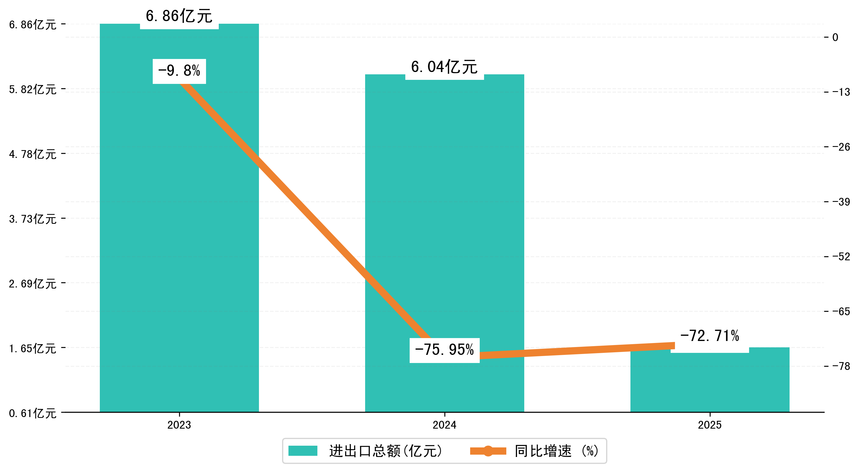 以人民币计,2025年1-2月汉中市贸易差额为1,3573,7191万元(贸易顺差),相比上年同期减少了3,6478,4632万元,同比减少-72.88%。