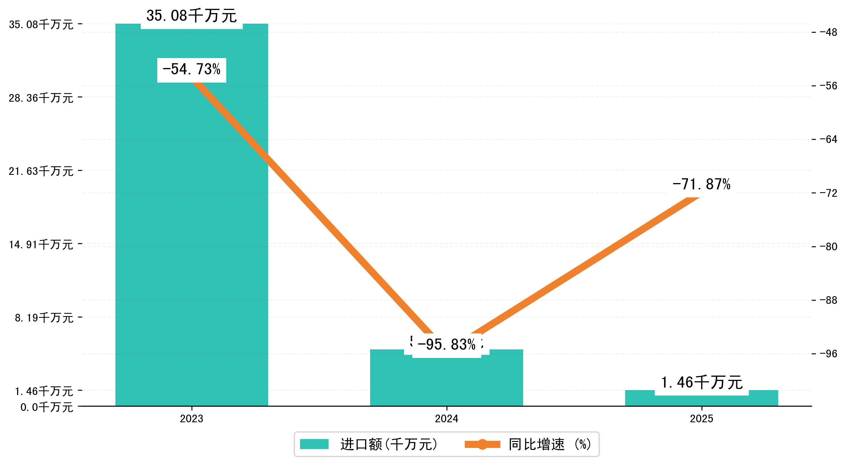 以人民币计,2025年1-2月汉中市进口额为1461.6062万元,相比上年同期减少了3733.7796万元,同比减少了-71.90%。
