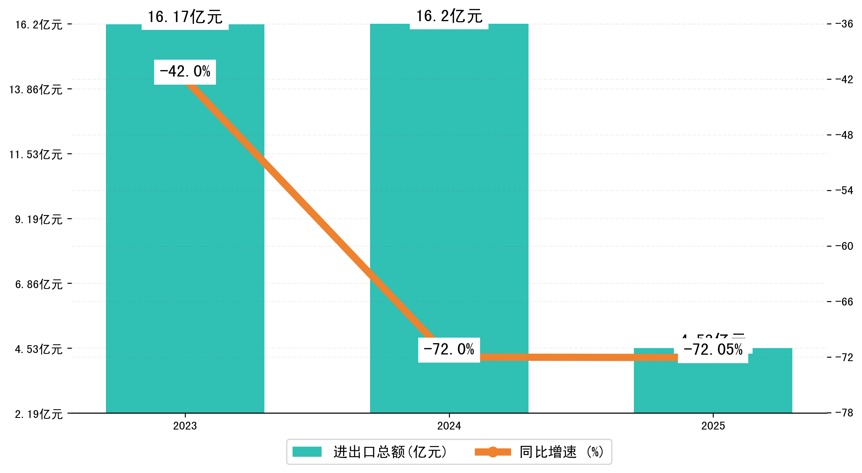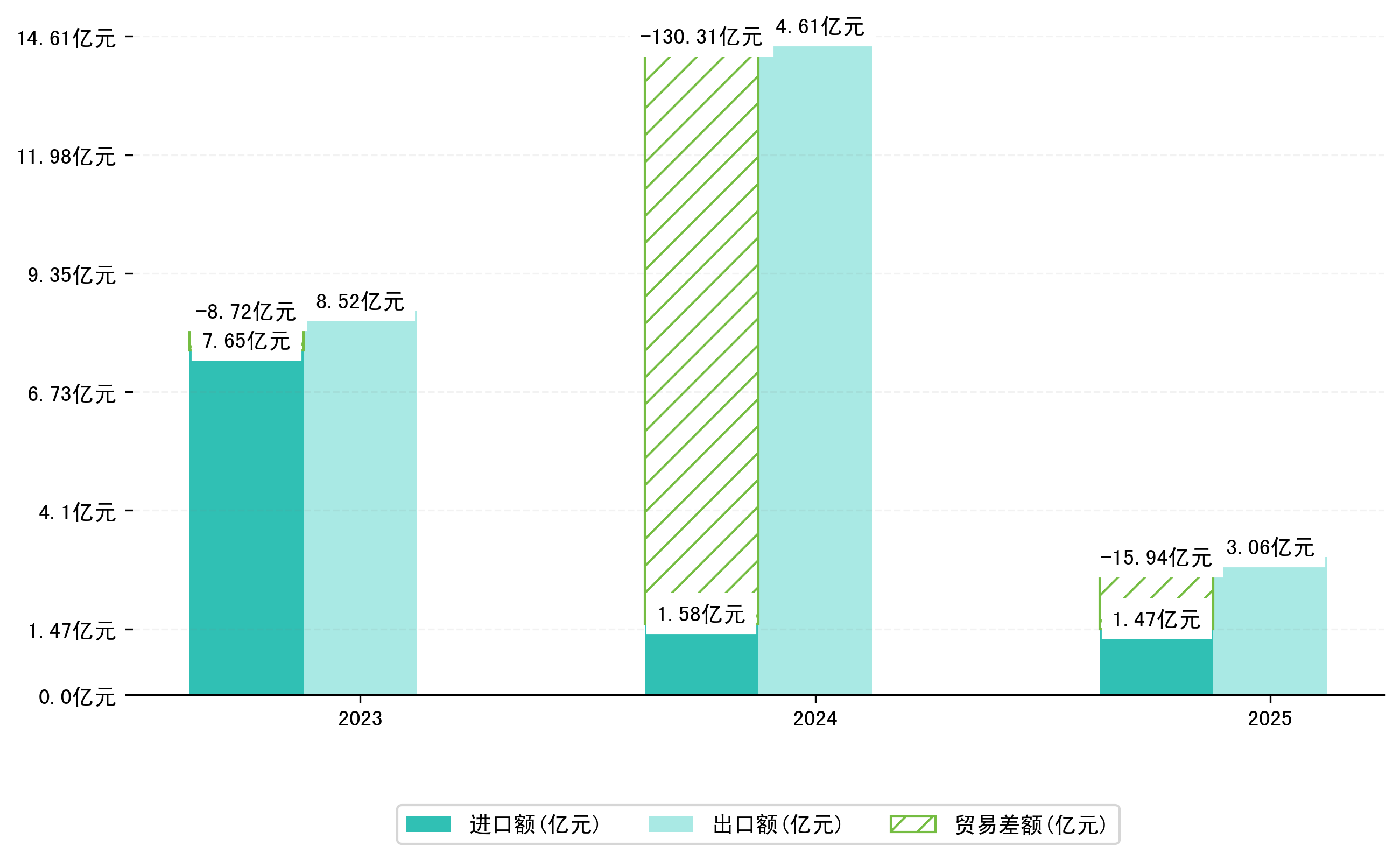 以美元计,2025年4月汉中市贸易差额为86,7189万美元(贸易逆差),相比上月减少了518,4536万美元;相比上年同期减少了2378,1740万美元,同比减少-103.78%。