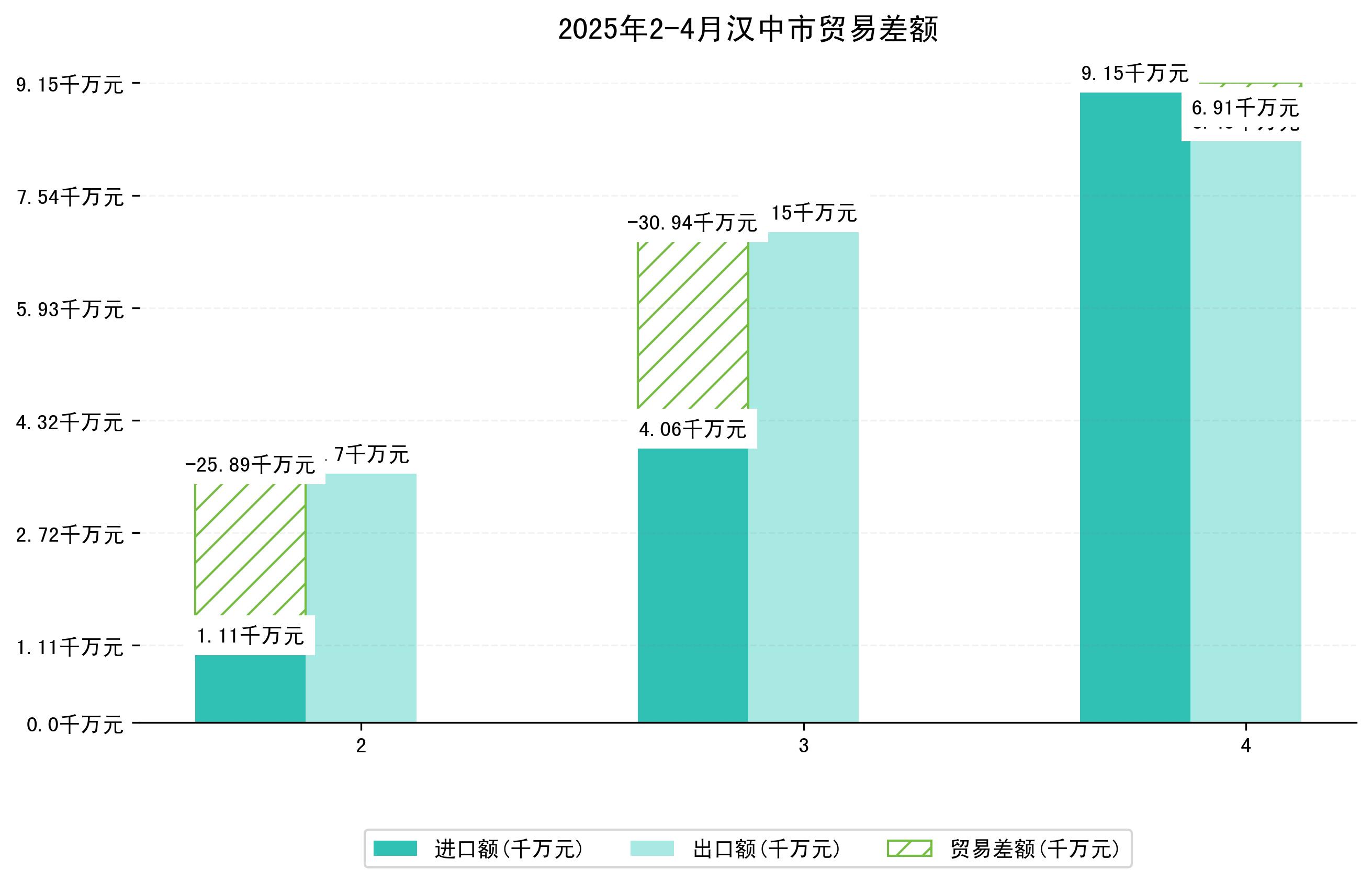 2025年4月汉中市进出口总额及进出口差额统计分析