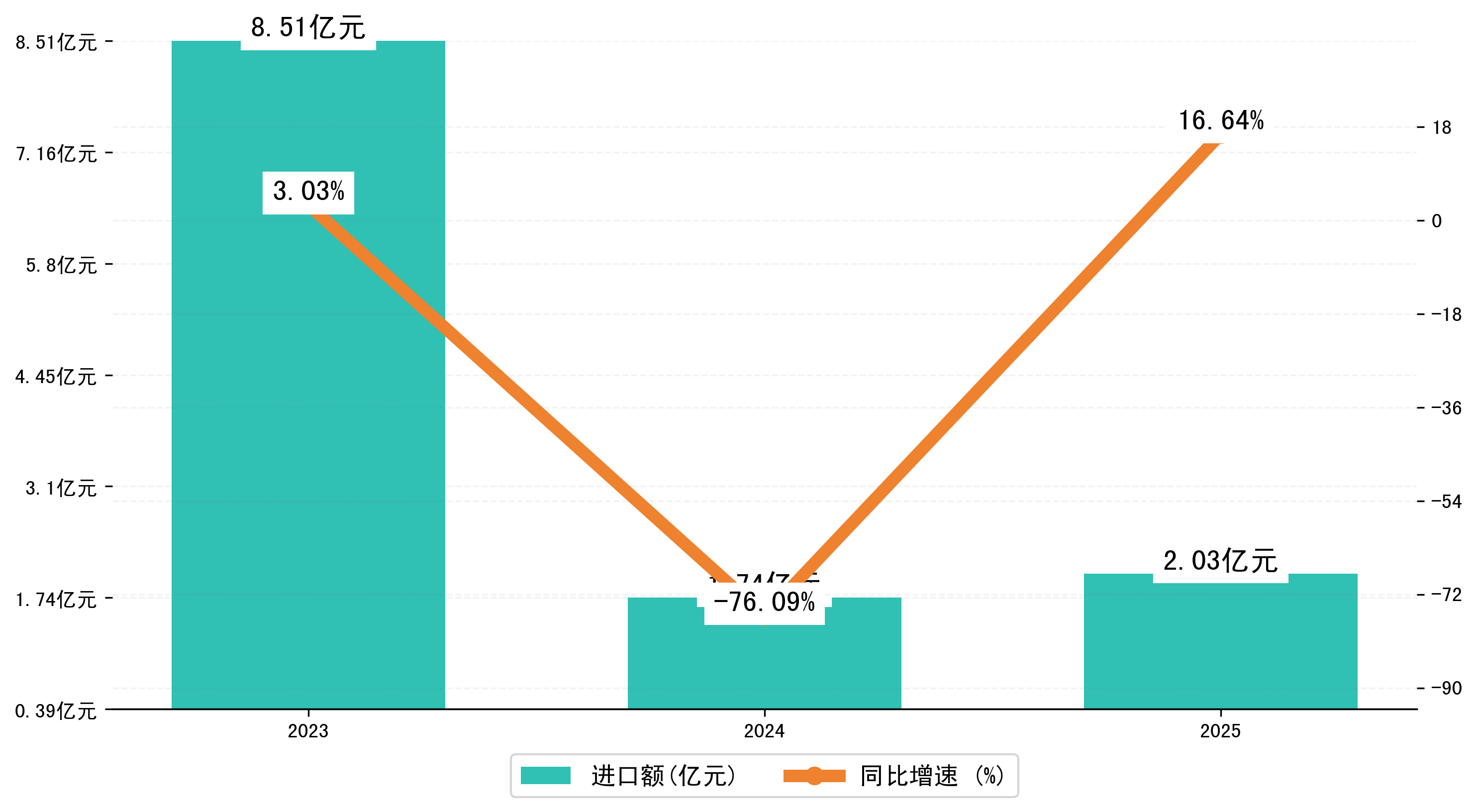以人民币计,2025年1-6月汉中市进口额为2,0344.1283万元,相比上年同期增加了2902.0474万元,同比增加了16.70%。