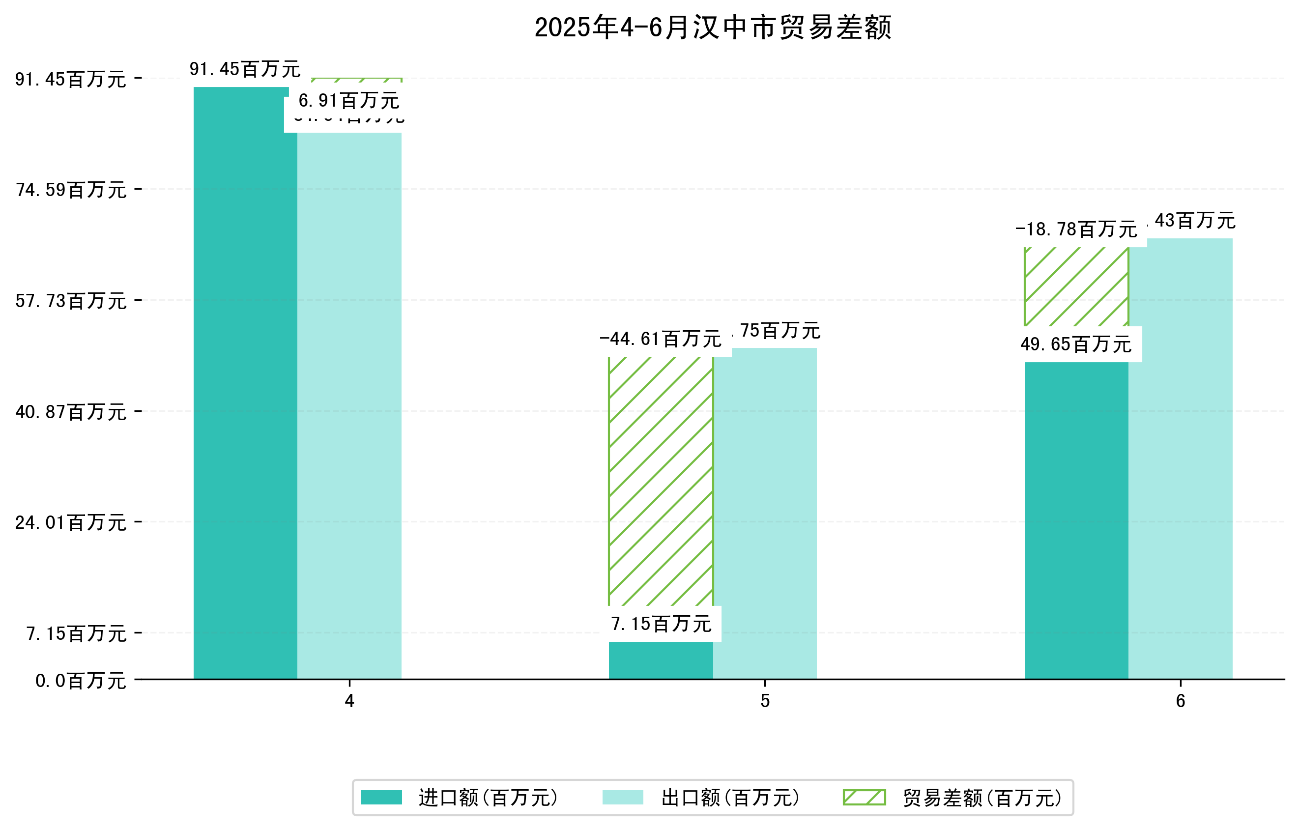 2025年6月汉中市进出口总额及进出口差额统计分析