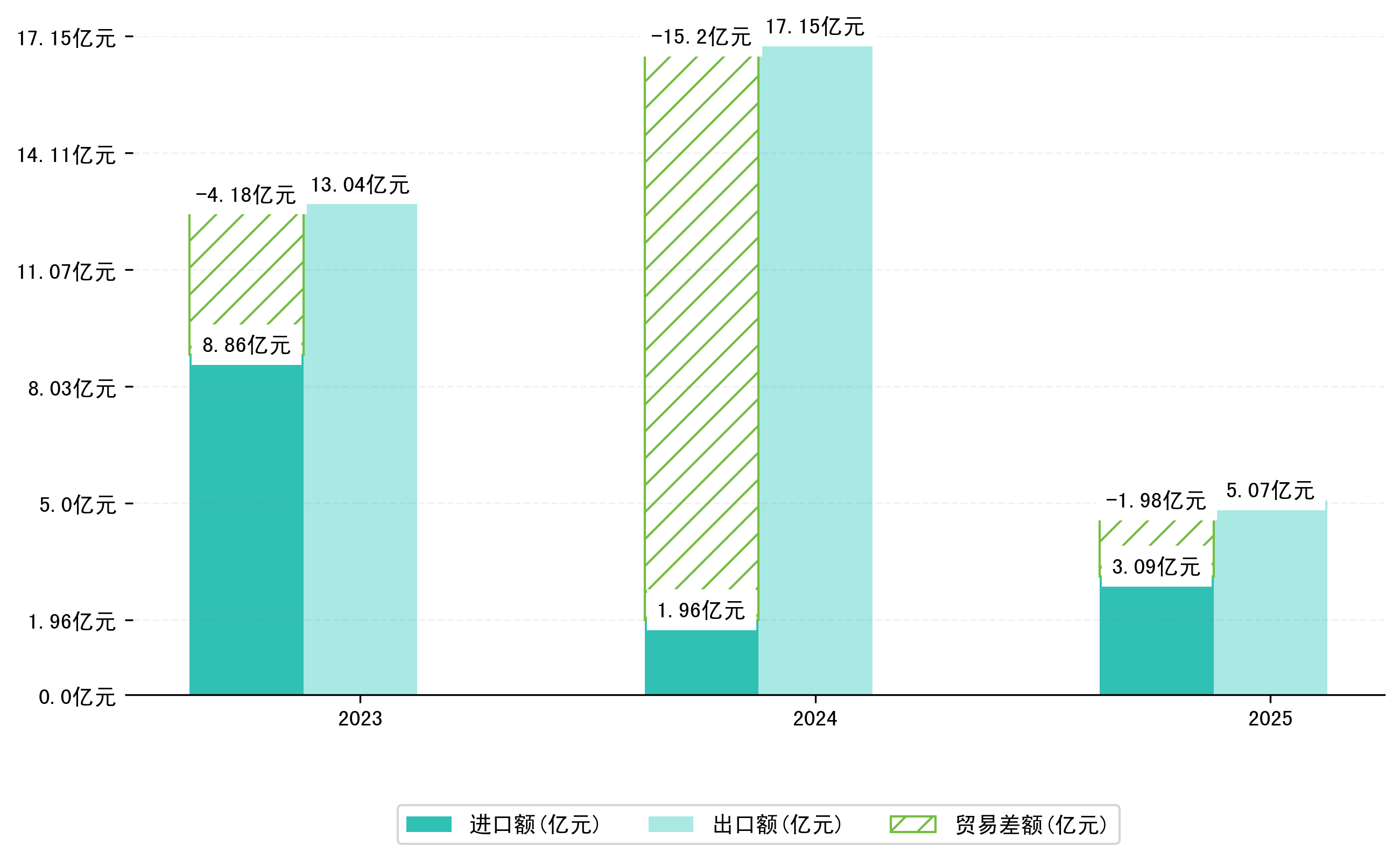 以人民币计,2025年1-7月汉中市贸易差额为1,9818,7382万元(贸易顺差),相比上年同期减少了13,2146,0020万元,同比减少-86.96%。