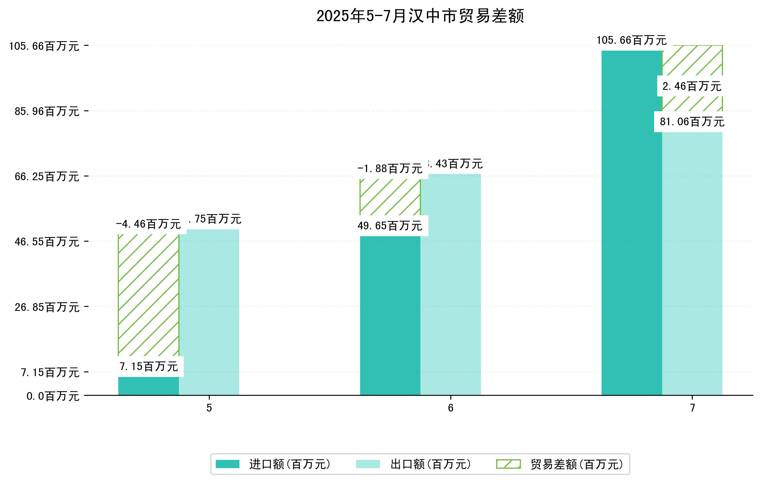 2025年7月汉中市进出口总额及进出口差额统计分析