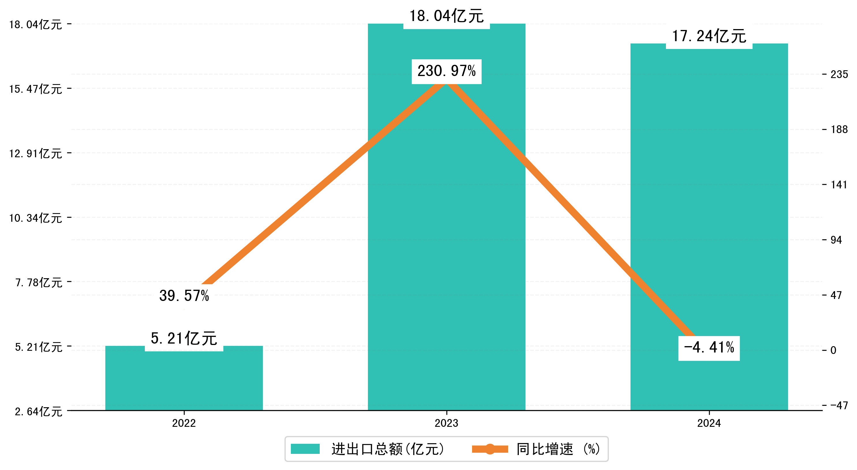 以人民币计,2024年1-5月汉中市进出口总额为17,2447.5105万元,相比上年同期减少了7947.0811万元,同比增加了0.60%。