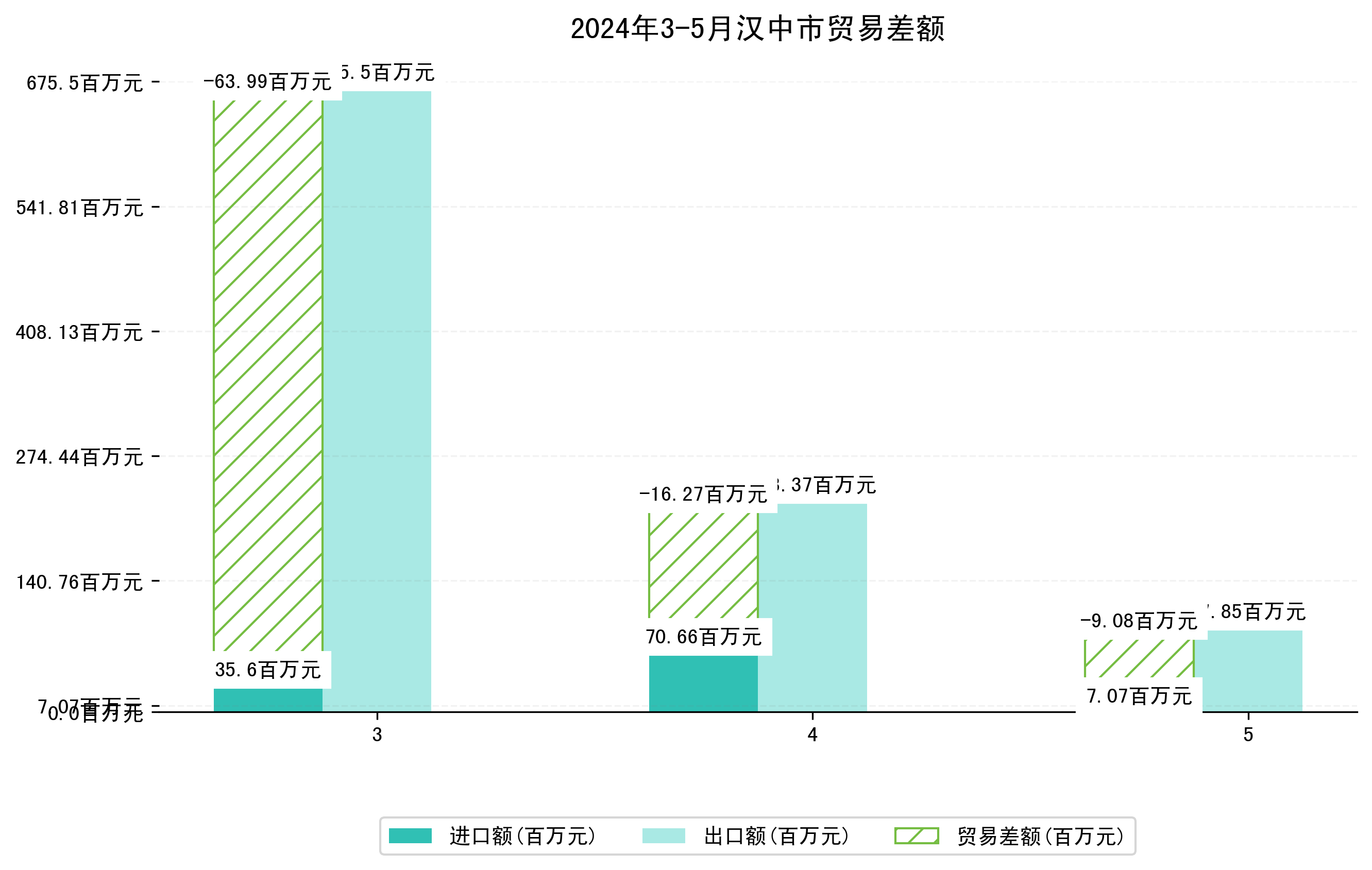 2024年5月汉中市进出口总额及进出口差额统计分析
