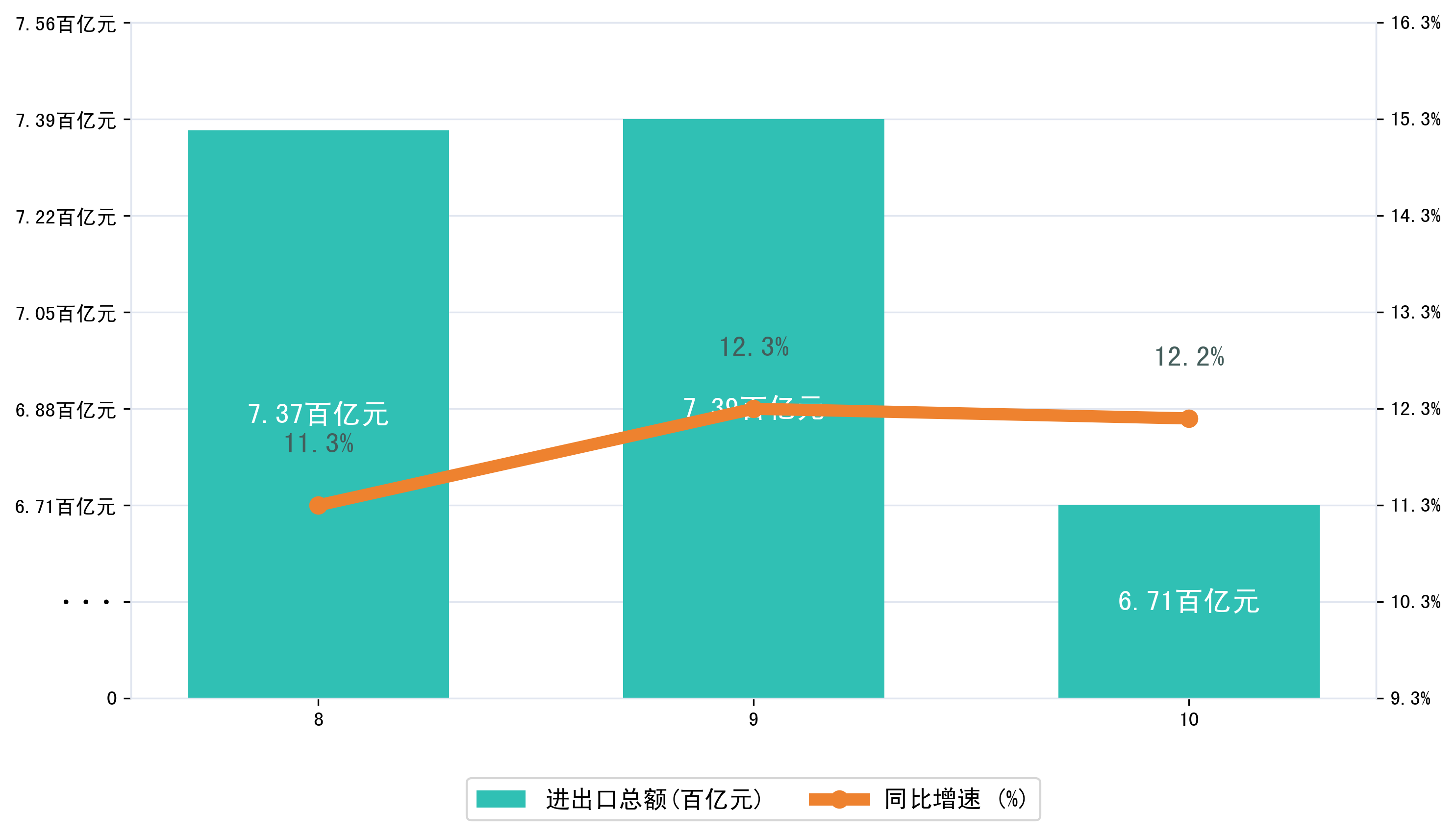 (图一:2025年8-10月重庆市进出口总额)