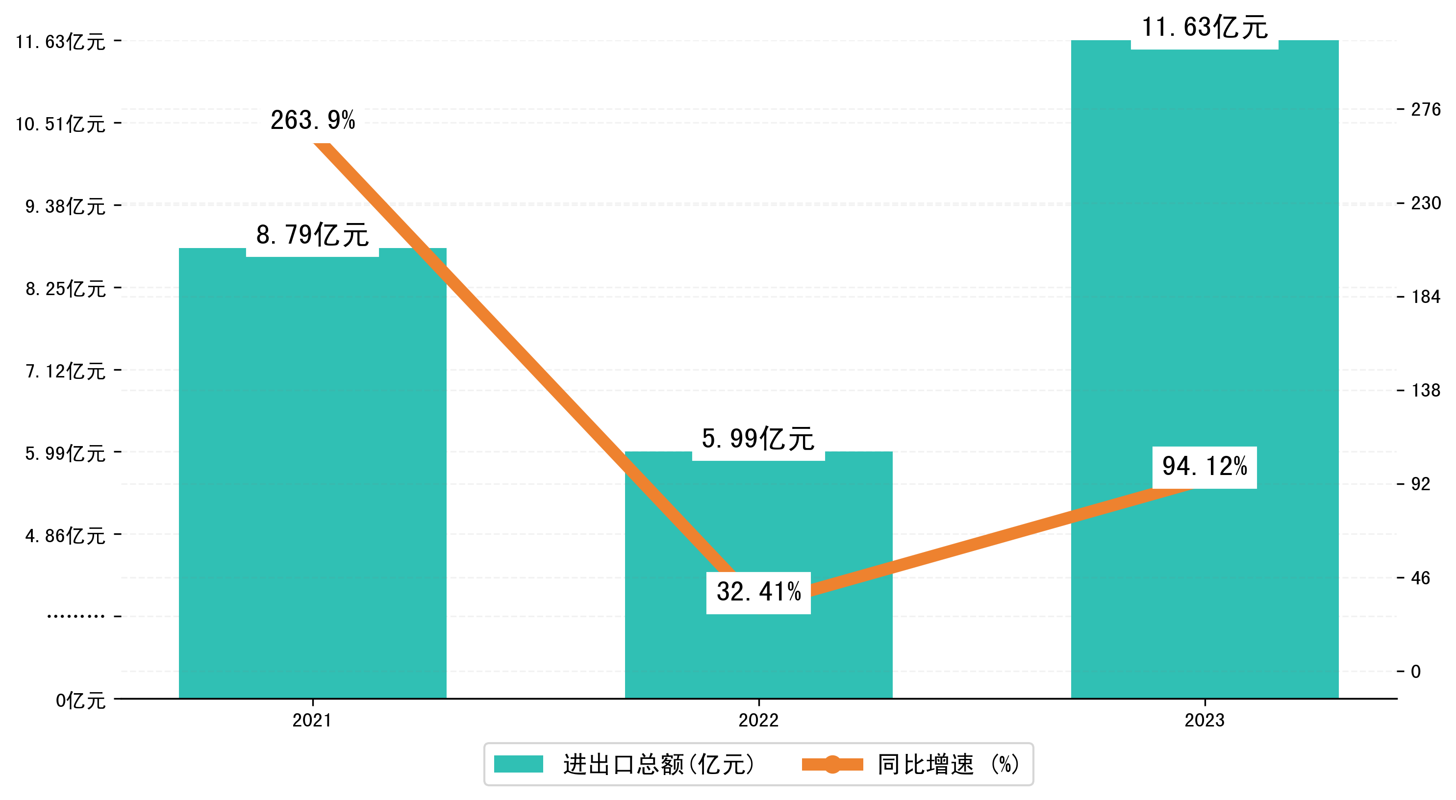 以人民币计,2023年1-3月汉中市进出口总额为11,6337.0026万元,相比上年同期增加了5,6406.1252万元,同比增加了329.20%。